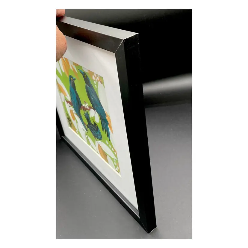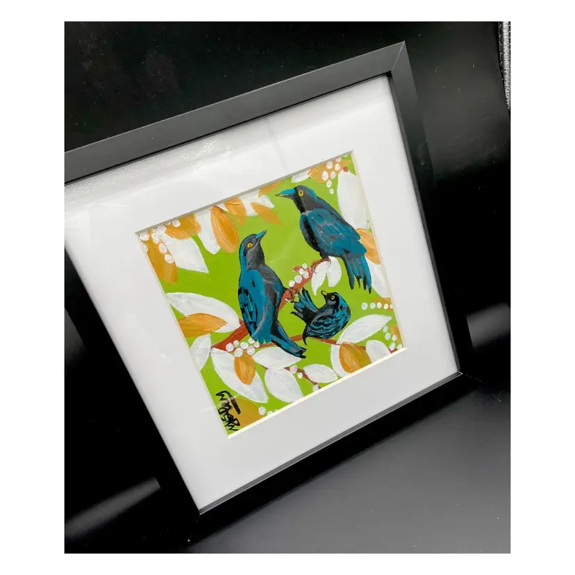 New original painting on 8”x8” canvas board in 13”x13” new black frame with white mat New condition #1124