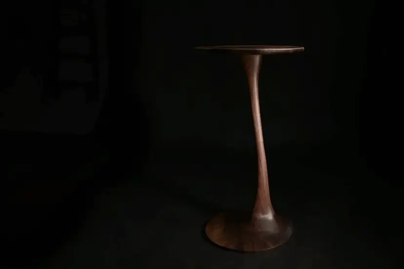 The base was then hand-sculpted from solid black walnut to naturally taper similar to a traditional ax handle in the center. then flares out to a perfectly round base.