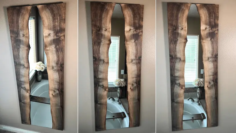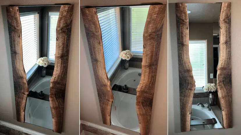Some mirrors feature a “bookmatch” set. Where the two sides form a mirror image of each other. While others are arranged from individual slabs. We do try and keep some inventory on hand, but if you have a particular style in mind feel free to shoot us a message to ensure we get you exactly what you’re looking for.