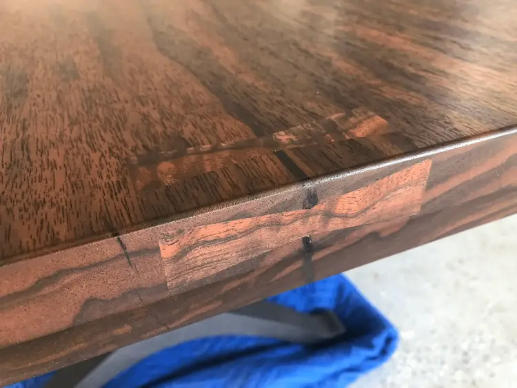 Underneath the table 2” steel C-channel was inlaid to provide long term stability and ensure the table stays perfectly flat for generations. The top was then mounted on a pair of wishbone steel legs that are attached with threaded inserts and machine bolts. This will allow assembly and disassembly an infinite number of times with just an allen wrench.