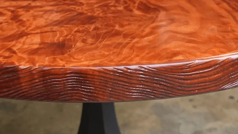 This table is finished with a 2k acrylic clear coat, topped with N3 Nano, in addition to the wood itself being infused with epoxy. Despite these being some of the most durable finishes available. Due to the soft nature of Redwood, this table will be more delicate than a comparable oak or walnut table. Meaning, not suited for toddlers or teenagers that act like I did at that age. However, if you like beautiful wood, and can take care of it, this piece will be a gorgeous addition.