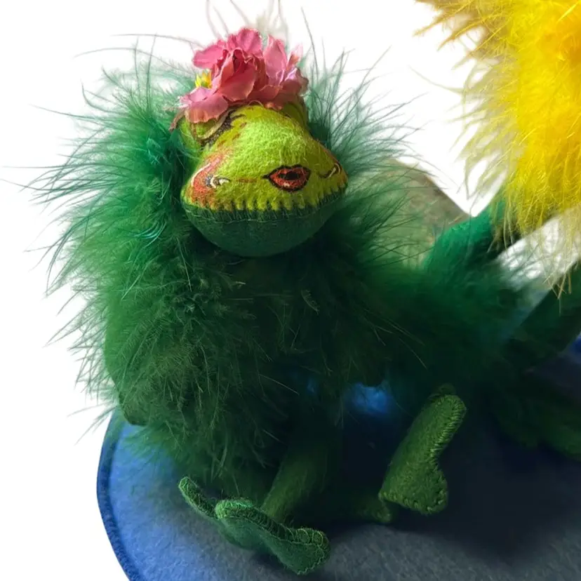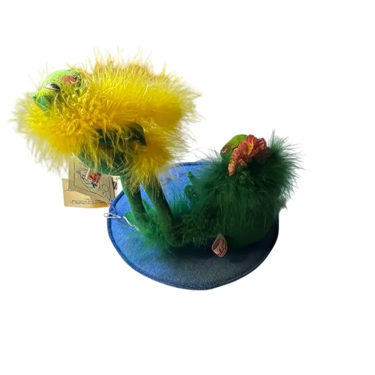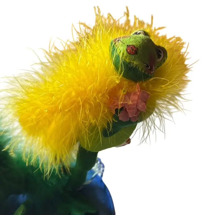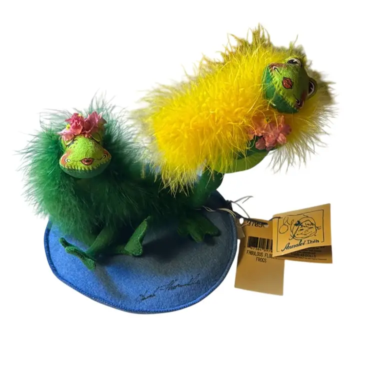 In perfect, new condition Blue base is 8 inches in diameter Standing frog is 7 inches tall
