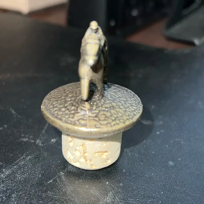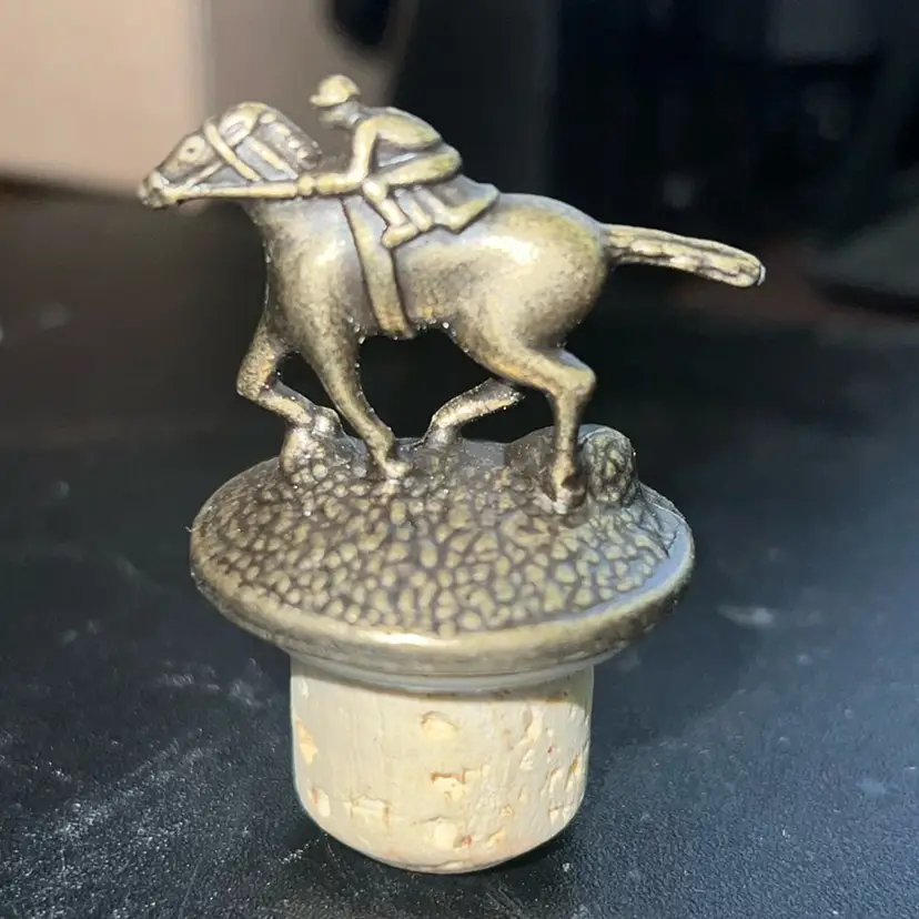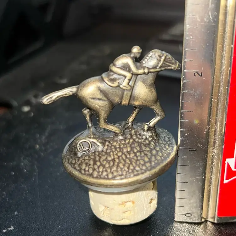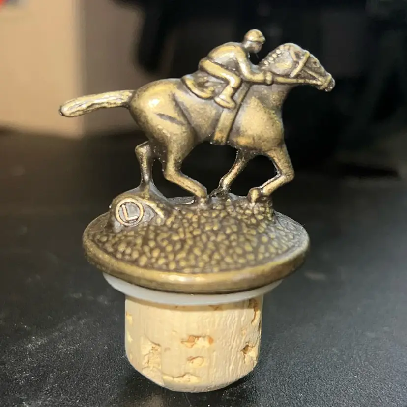 Blanton's Bourbon bottle stopper with a horse and jockey figure. Letter “L”