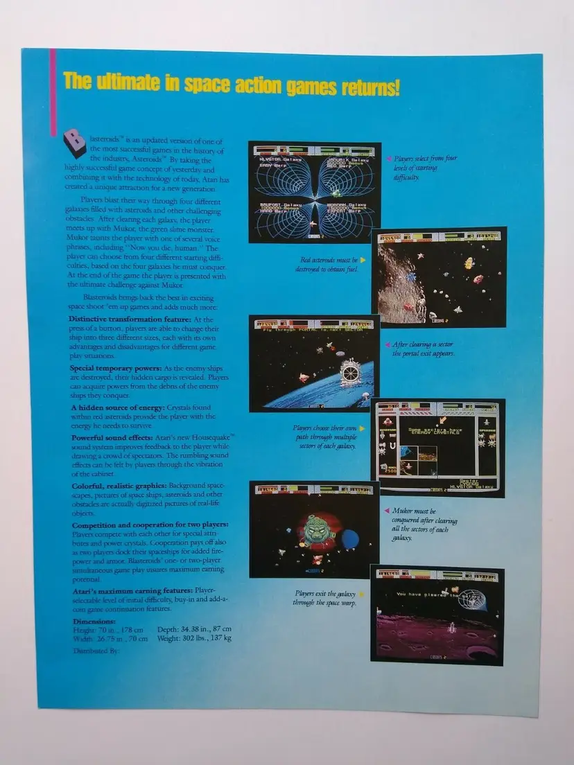 Arcade: Flyer Modified Item: No Country/Region of Manufacture: United States Original/Reproduction: Original Year: 1988 Game Title: Blasteroids Brand: Atari