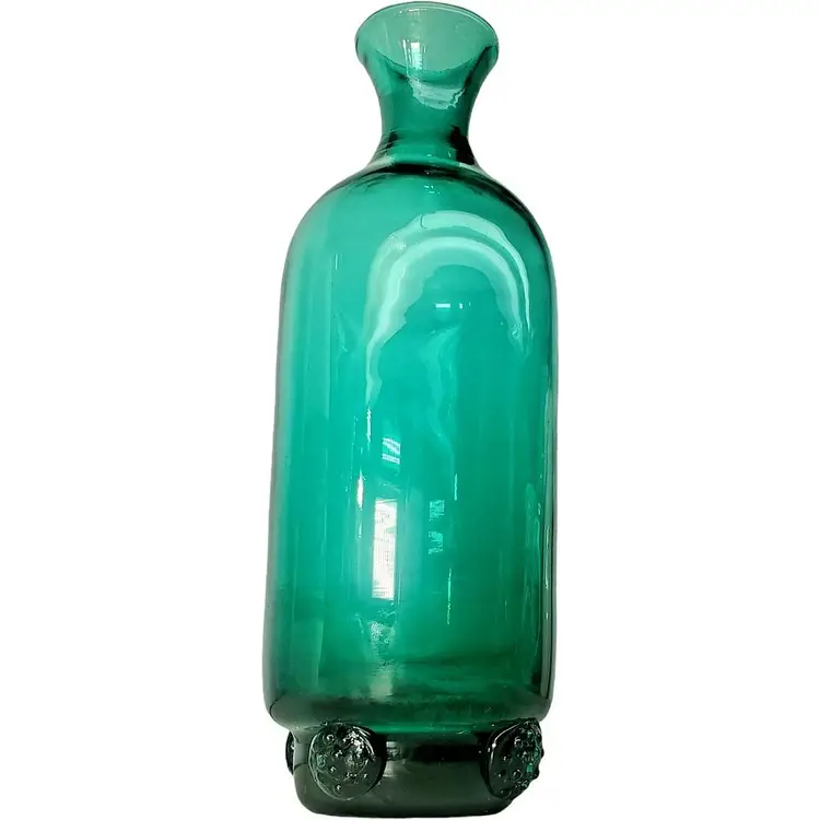 Lovely emerald green Blenko decanter with applied rosettes, 445D, designed by Winslow Anderson.