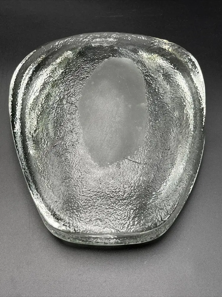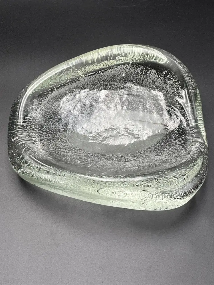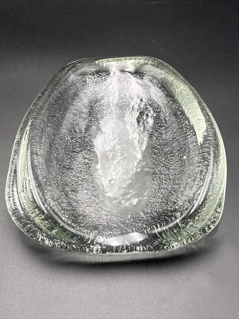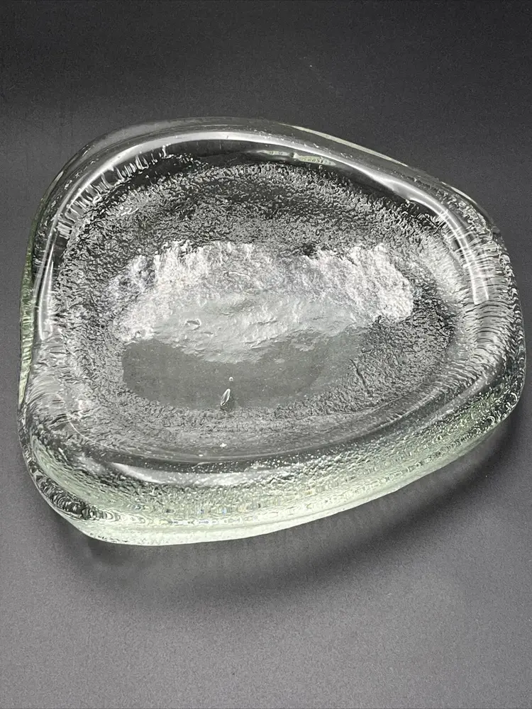 Measures Approx 7 1/2" x 6 3/4" and at its tallest 2 1/4” Bowl Weighs Almost 4 Pounds! You Can See Bubbles In The Very Thick Glass The Bottom Has A Matte Area In One Close Up Picture You Will See 3 Small Inclusions That I Believe Are Popped Bubbles There Is A Line That Appears To Be A Straw Mark From The Manufacturing Process I Believe These Flaws Are Original To The Piece Feel Free To Contact Me With Any Questions I Do Combine Shipping Pattern: Abstract Shape: Free Form Color: Clear Material: Glass Vintage: Yes Brand: Blenko Type: Bowl Production Style: Art Glass Time Period Manufactured: 1950-1959 Production Technique: Hand Blown Glass Country/Region of Manufacture: United States Handmade: Yes