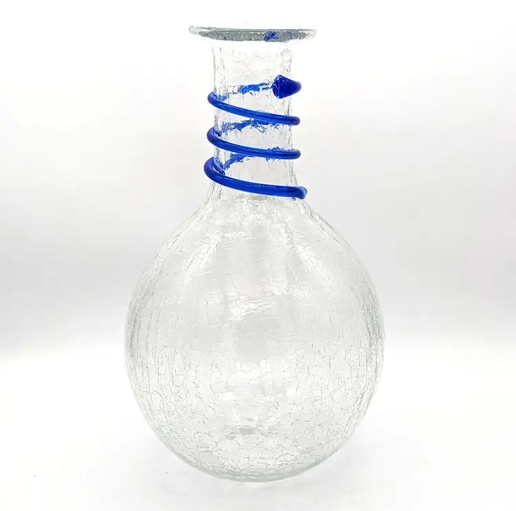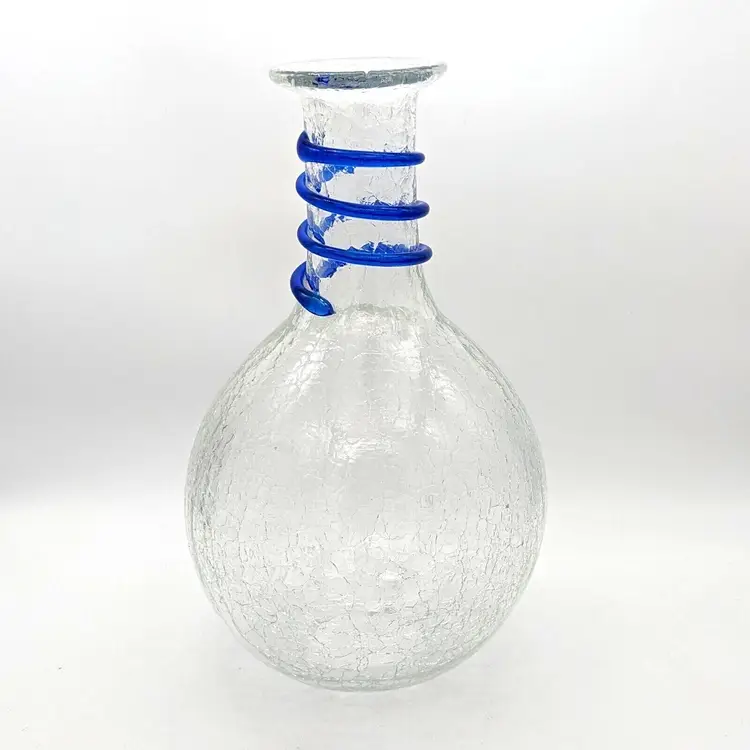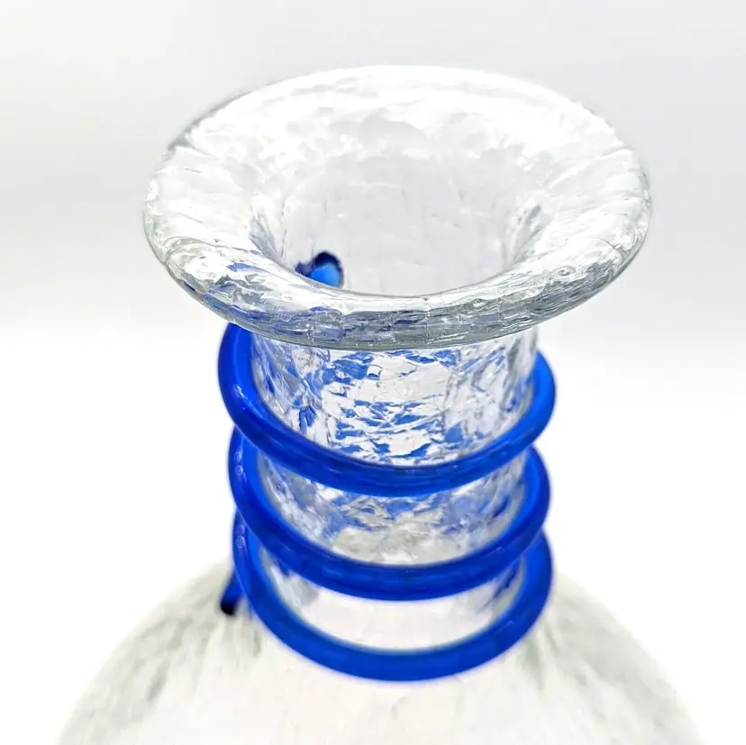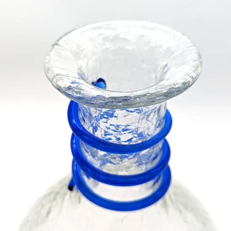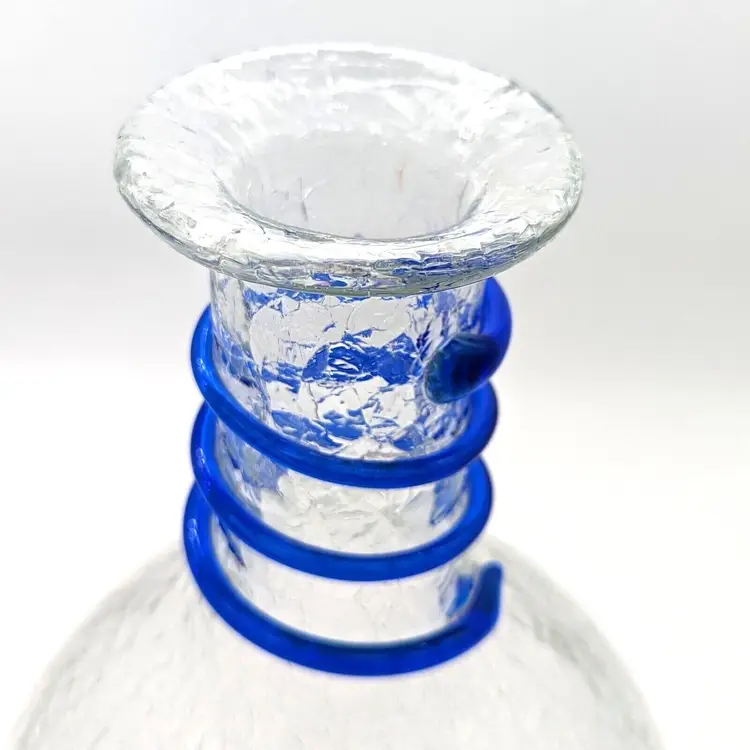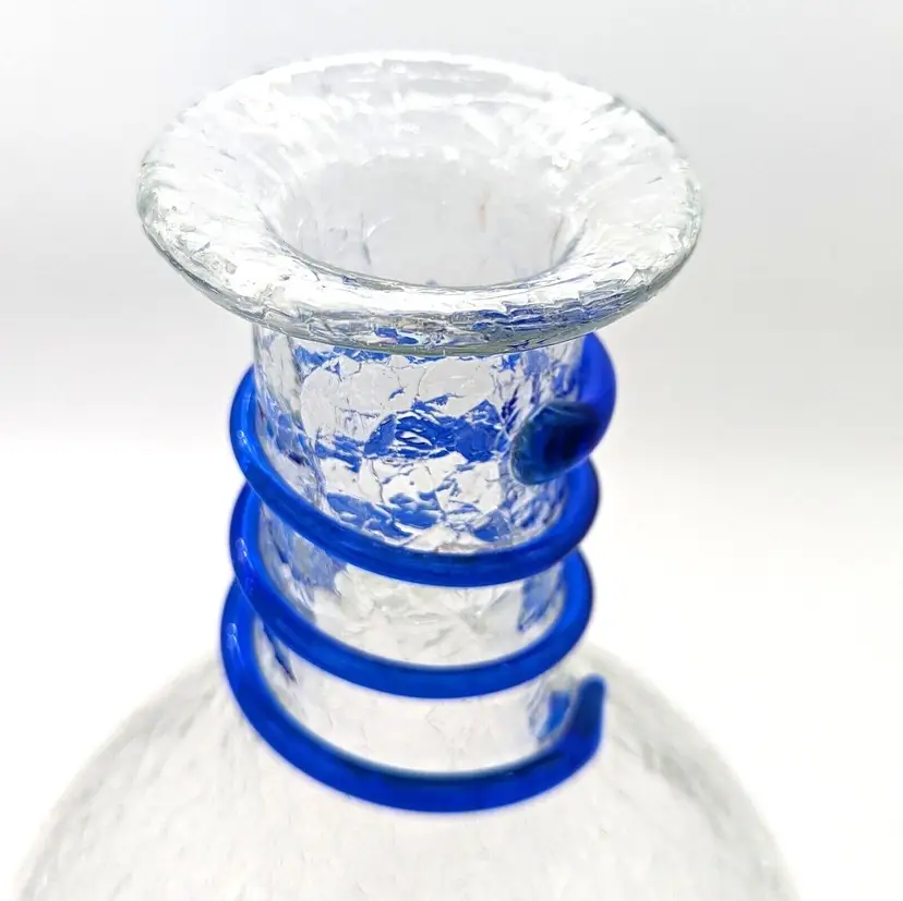 Blenko Clear Crackle Decanter #9432 Clear Crystal with Electric Blue Spiral Ribbing c 2007