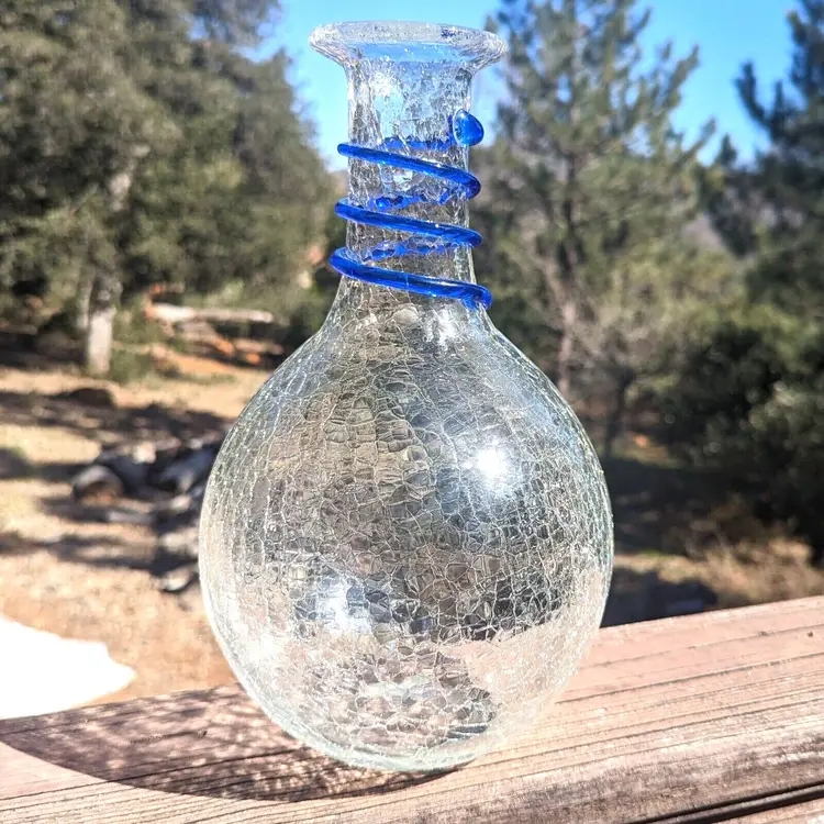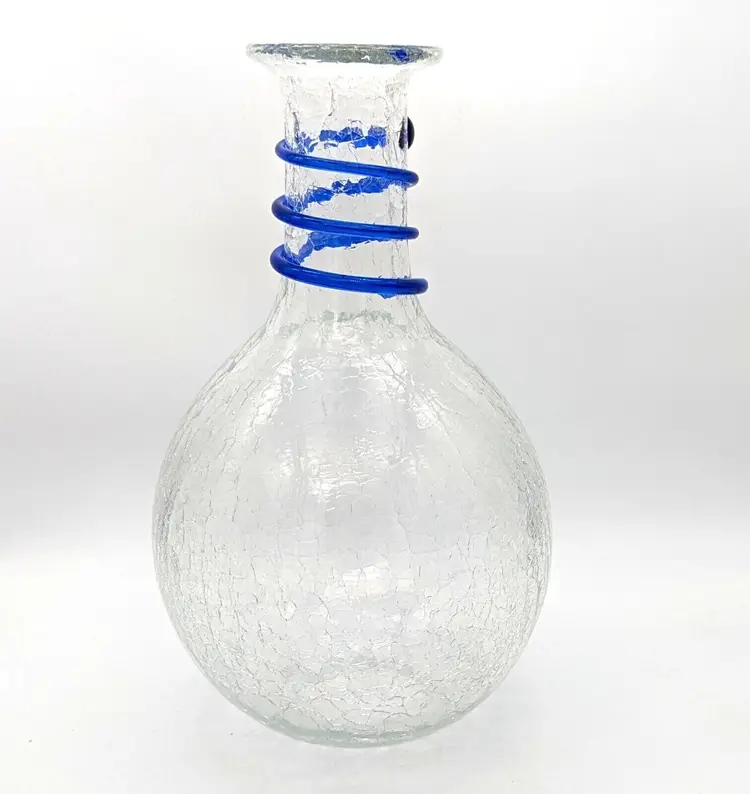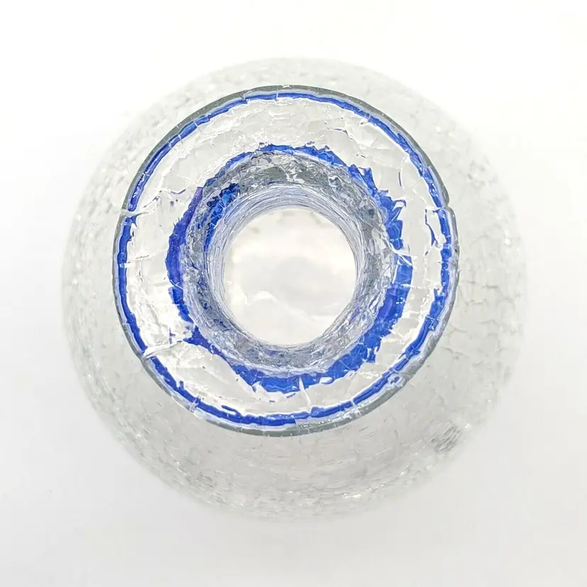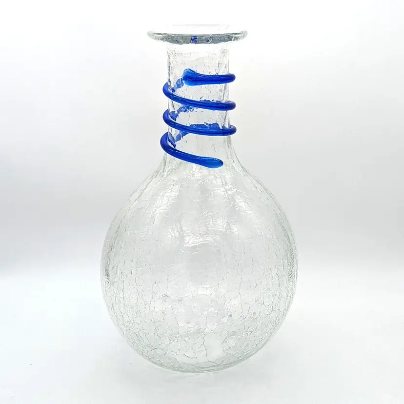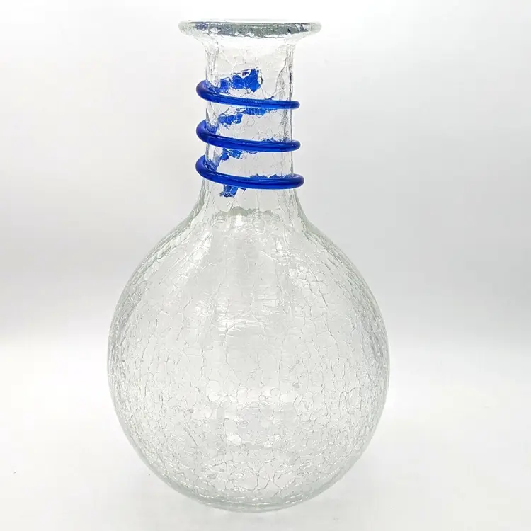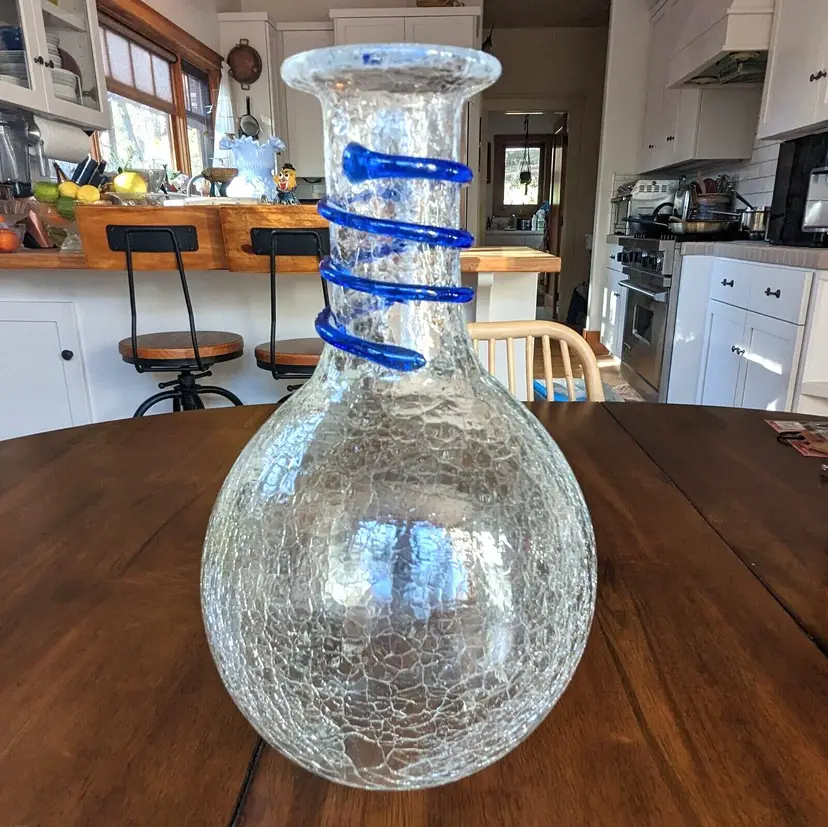 Blenko Clear Crackle Decanter #9432 Clear Crystal with Electric Blue Spiral Ribbing c 2007