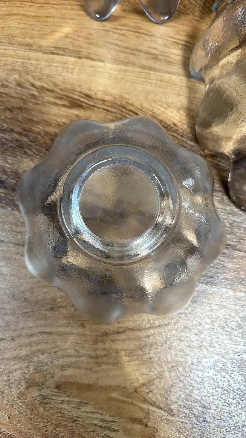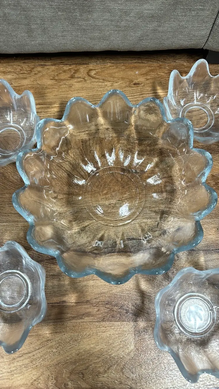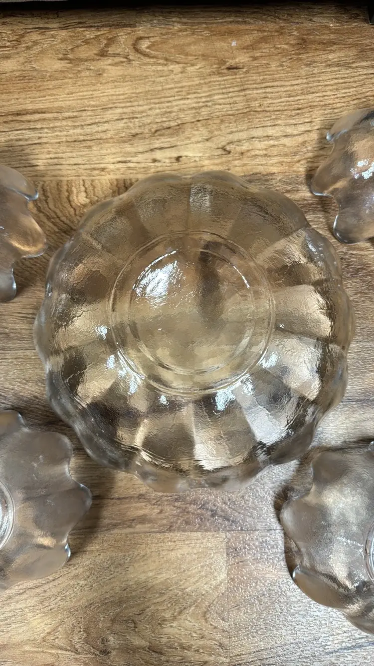 Vintage Blenko clear lotus 8 petal fruit/salad/ dessert bowls mcm set of 4 5.5” diameter 3” tall Excellent condition with no breaks or chips (29922428)