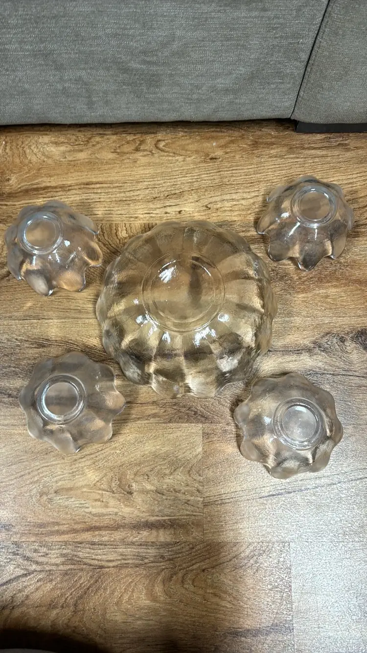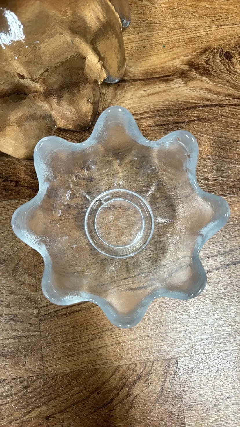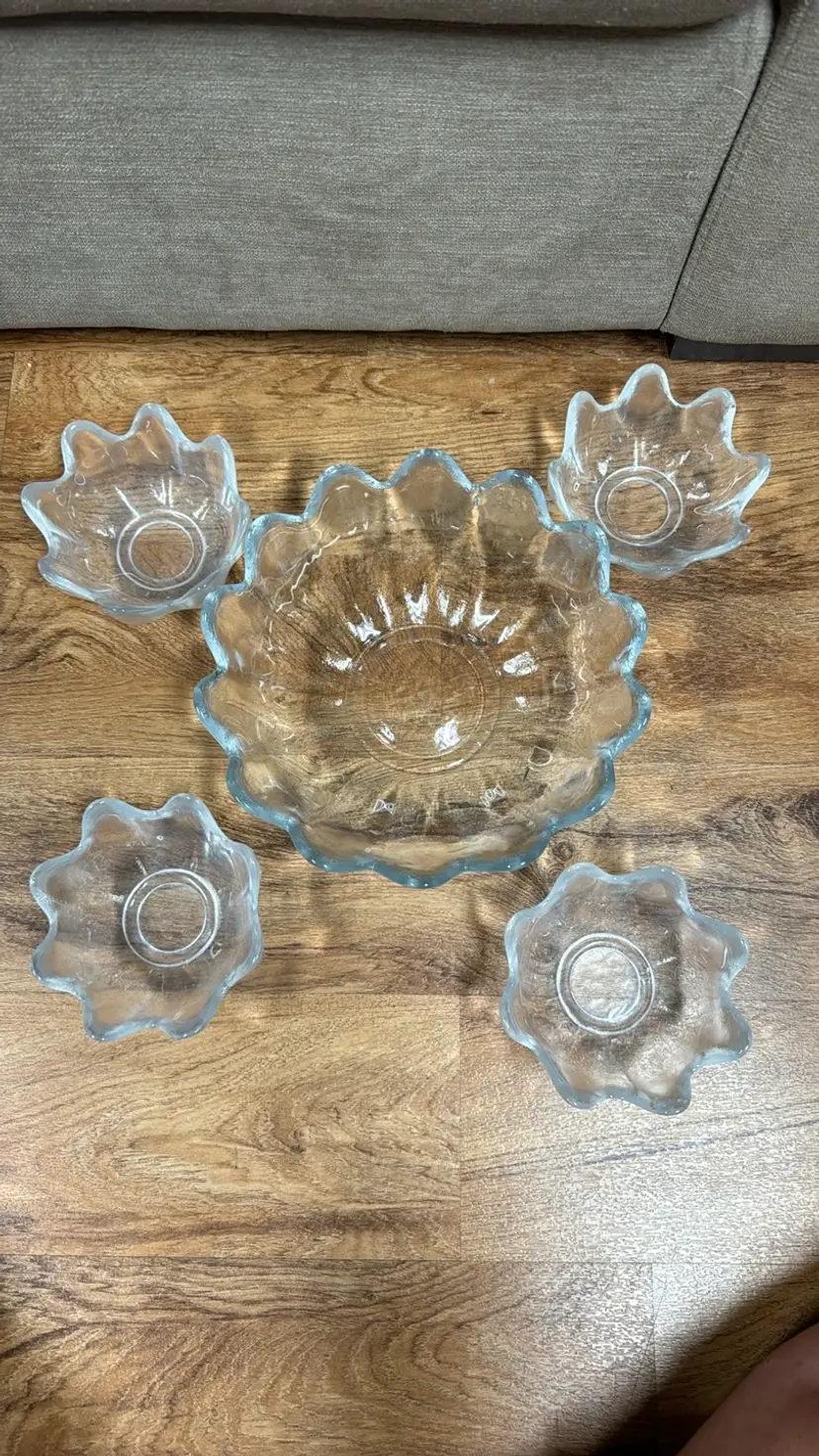Vintage Blenko clear lotus 8 petal fruit/salad/ dessert bowls mcm set of 4 5.5” diameter 3” tall Excellent condition with no breaks or chips (29922428)