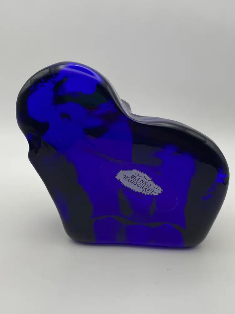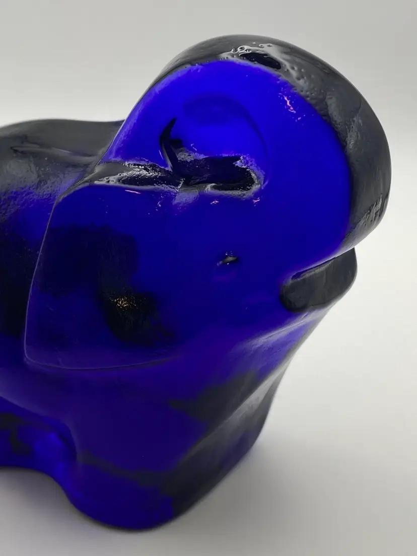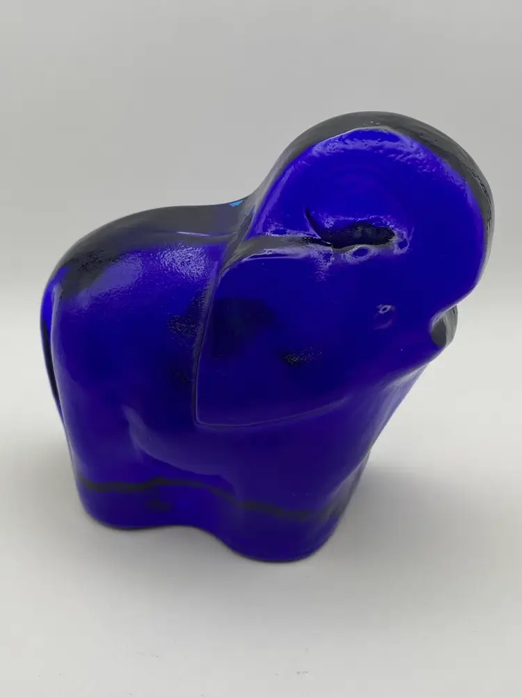 Blenko Cobalt Blue Elephant Paperweight With Sticker. Great condition. See pictures.