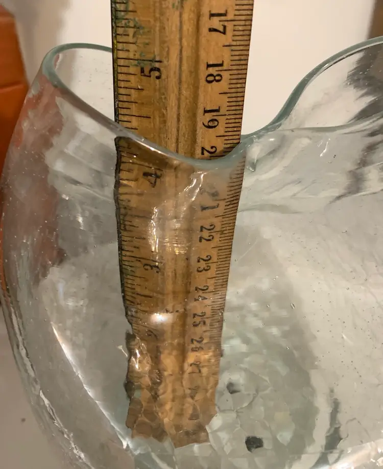 clear as shown some water marks that may come off with rubbing alcohol/ magic eraser 5" tall