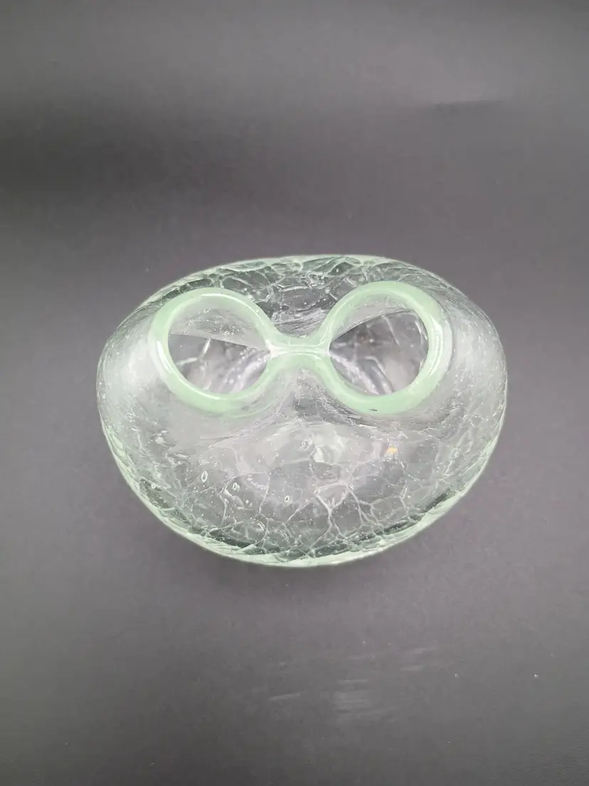 It's a great Blenko mini -- the pinched ivy vase -- in crackle finish crystal. It's in excellent vintage condition with no chips or cracks.
