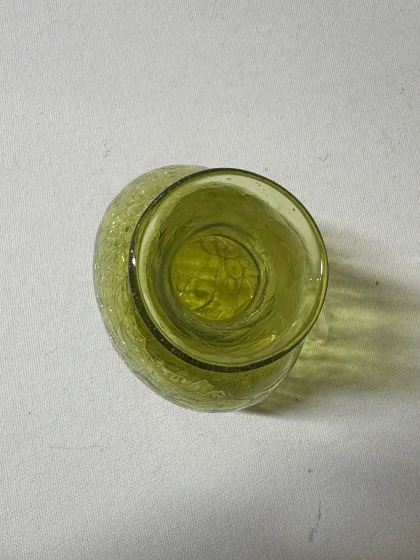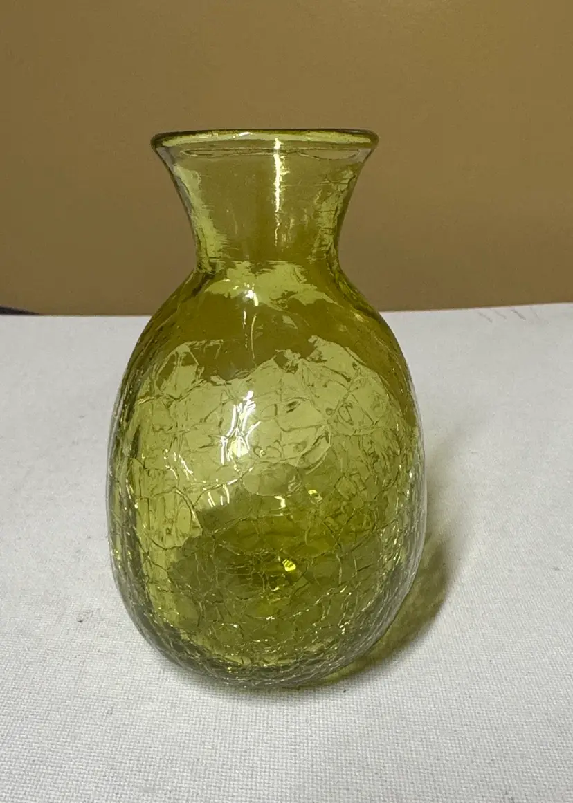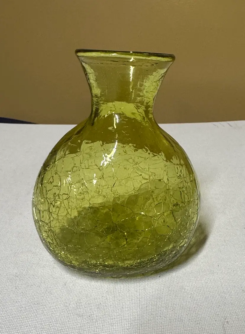 Elegant green textured glass vase. Perfect for home decor. Vintage MCM Blenko Glass CM-6 Mini Vase In chartreuse Crackle 4.75” Excellent condition with no breaks or chips (1054102253)