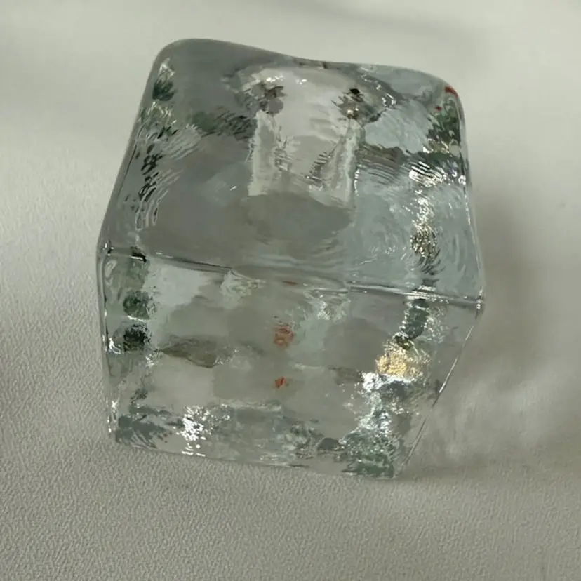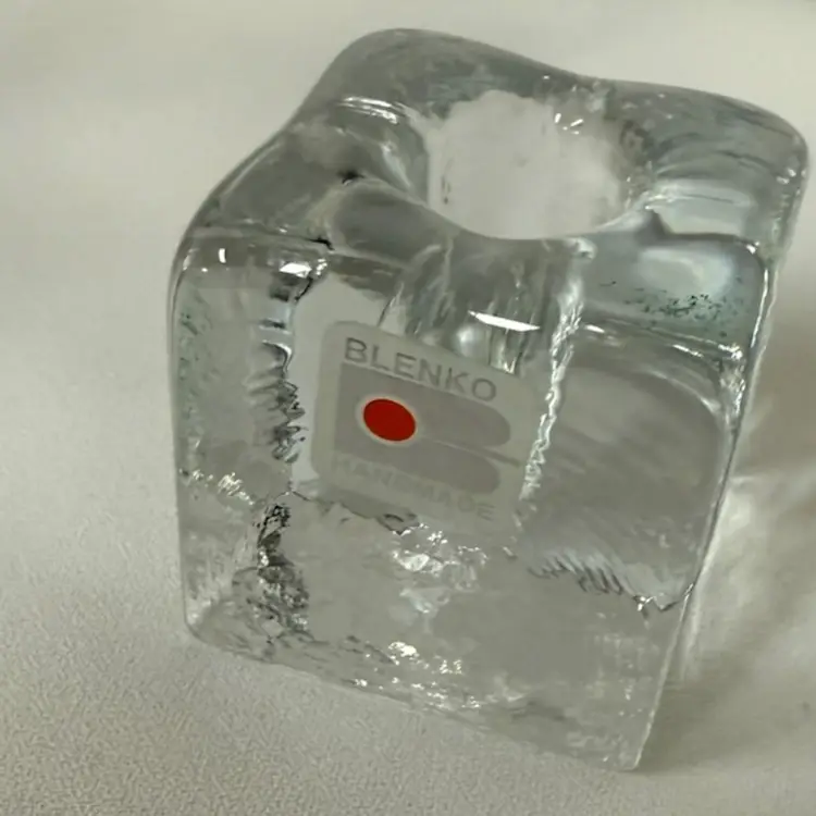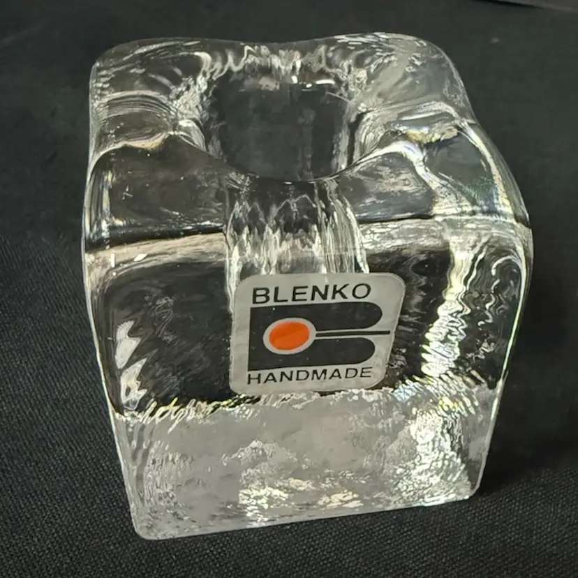 BLENKO candle Holder For A Taper Size Candle. Heavy Ice Cube Block. Optic Texture Great Condition With Original Label. 2 1/4 Tall By 2” Square. I refund any shipping overages.