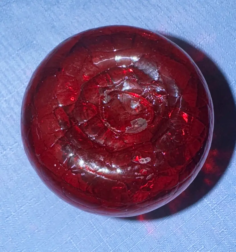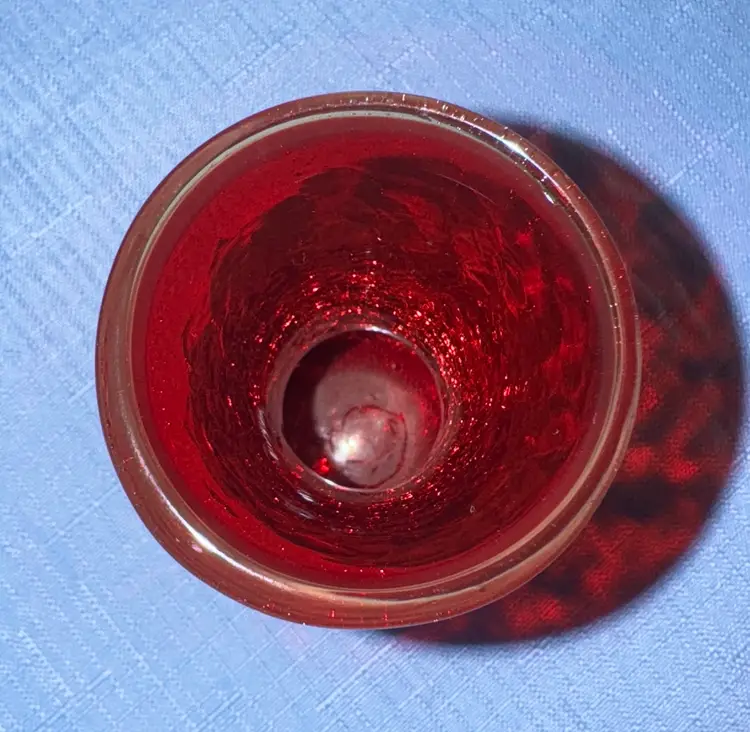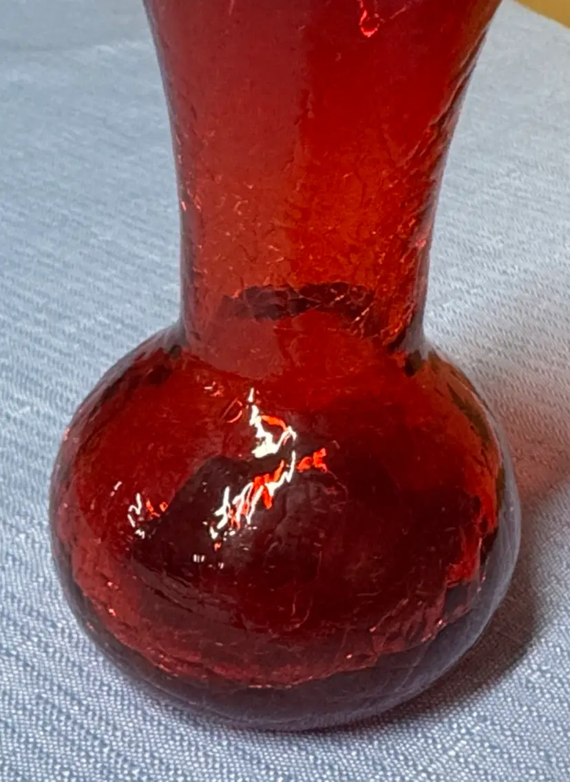 Elegant red crackle glass vase. Perfect for home decor. BLENKO MINI CRACKLE GLASS VASE CM-8 IN RUBY 3 7/8” tall cadmium glow under black light Excellent condition with no breaks or chips (2302272612)