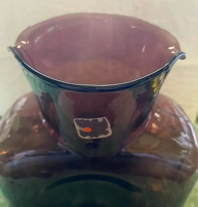 Vintage Purple Blenko Glass Double Spouted Pitcher Decanter Carafe no chips or cracks