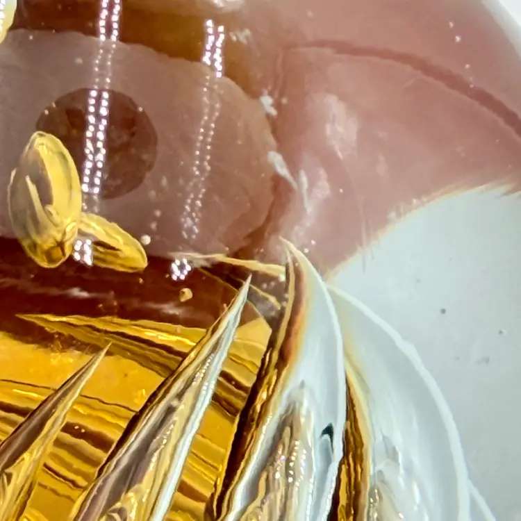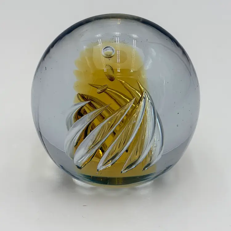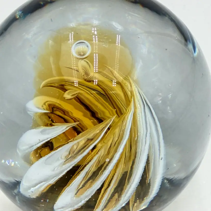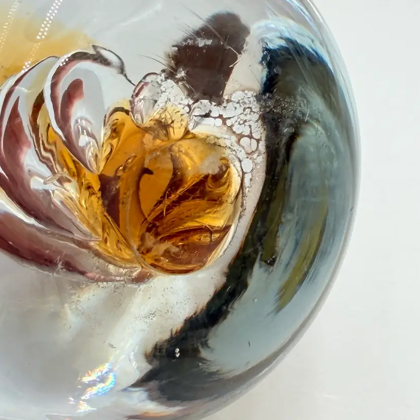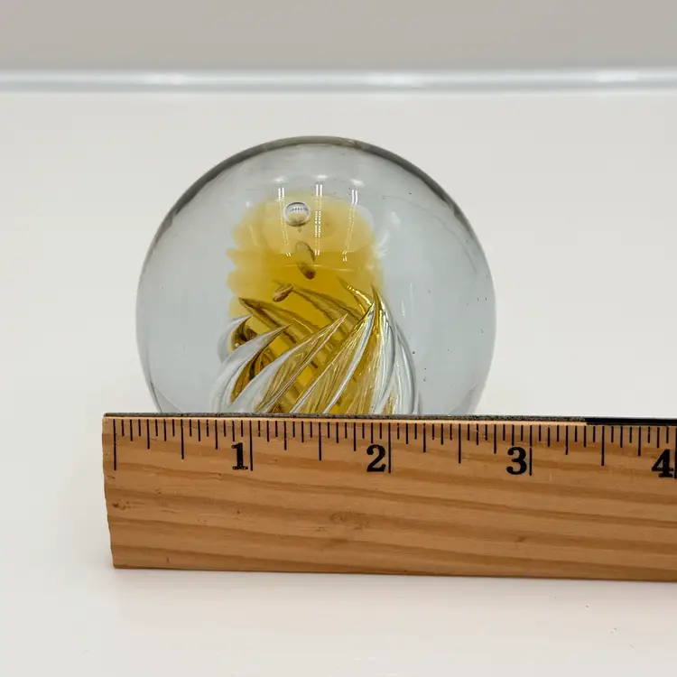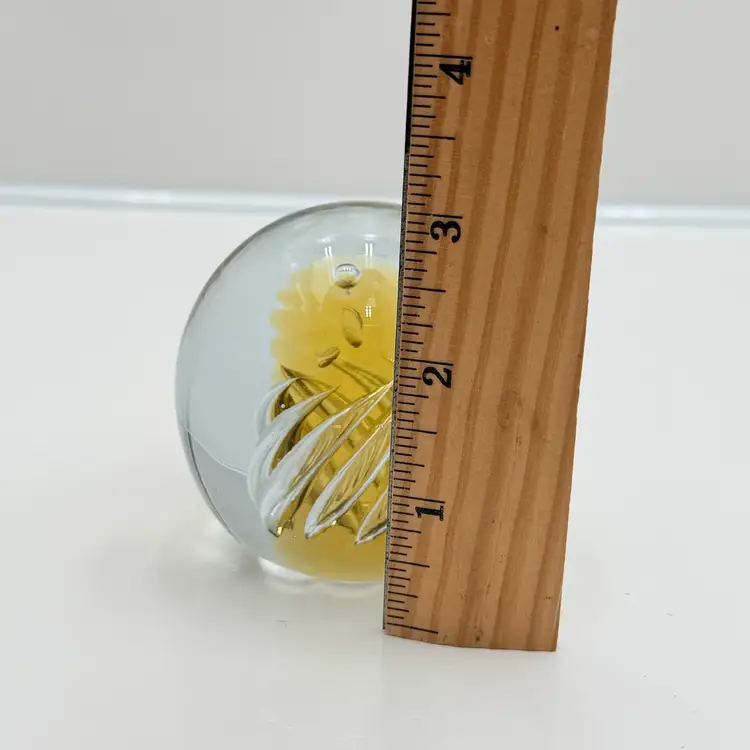 As shown About 3 inches tall by 3 inches wide Very small flea bite in one side no cracks