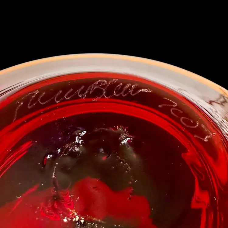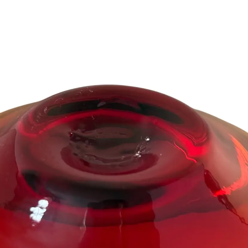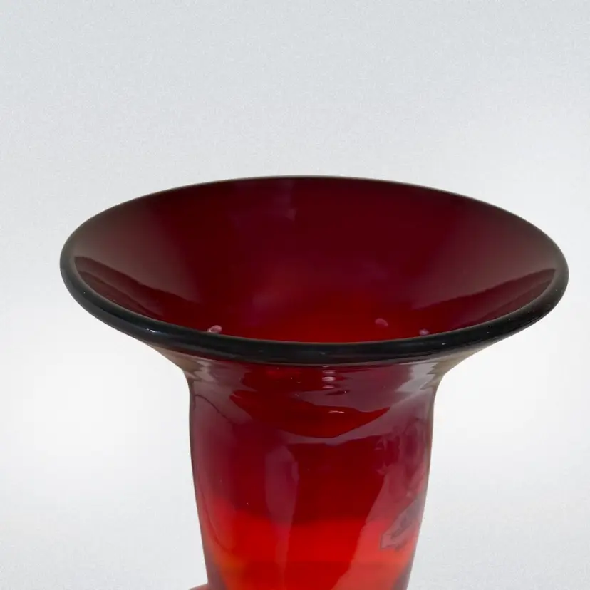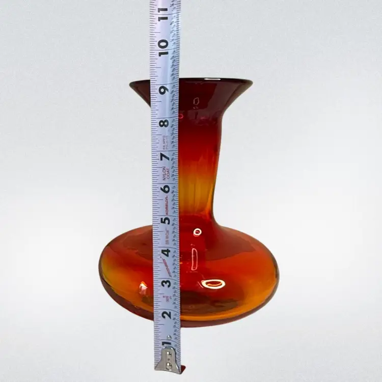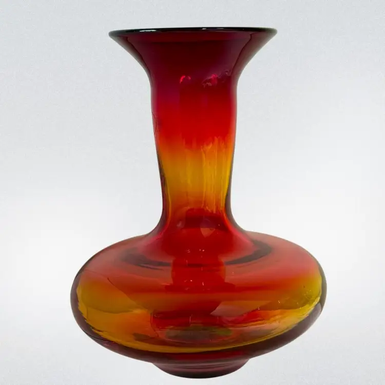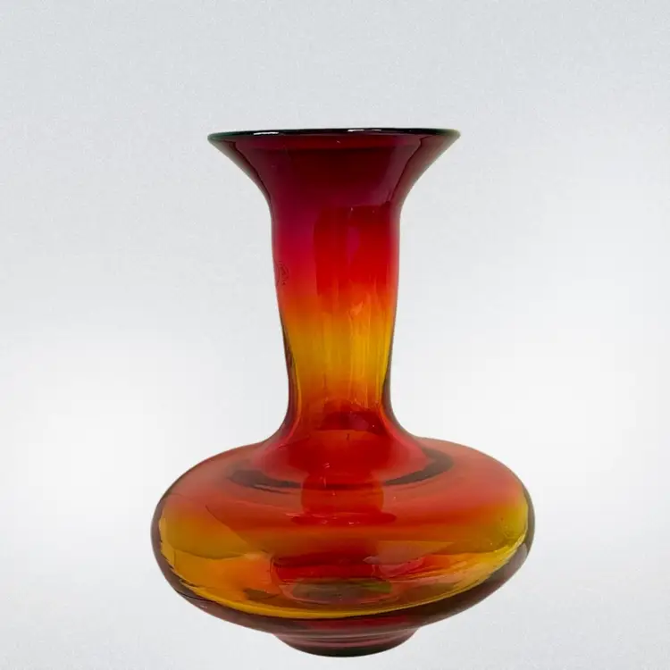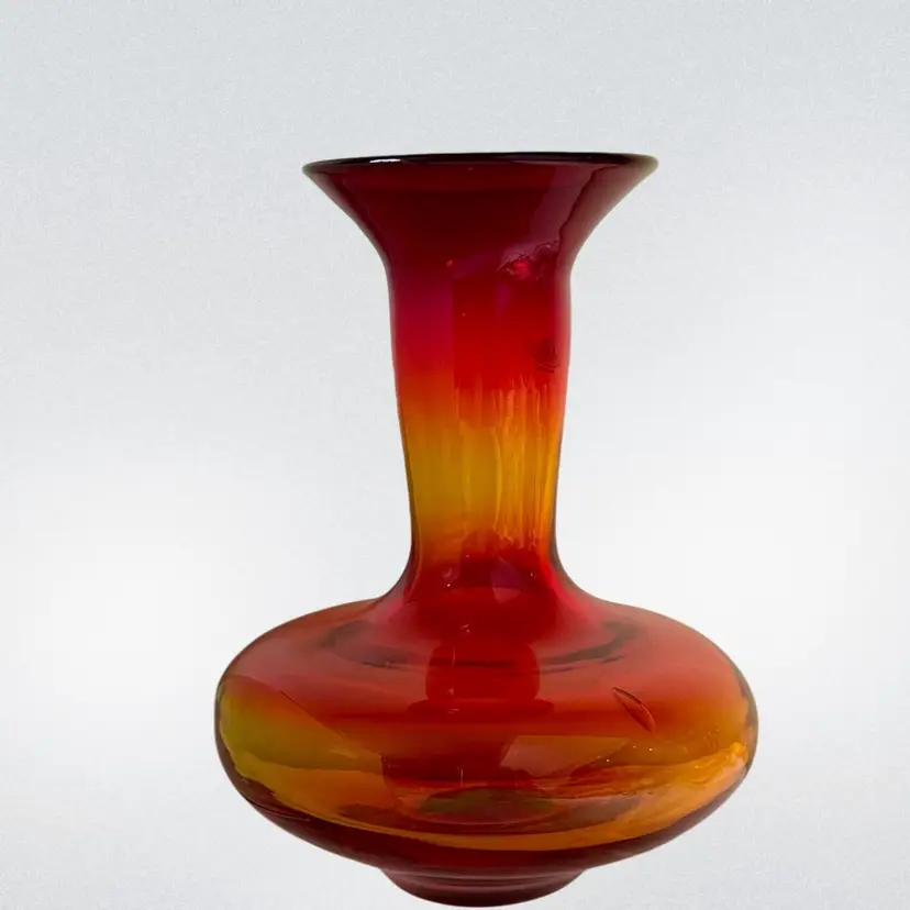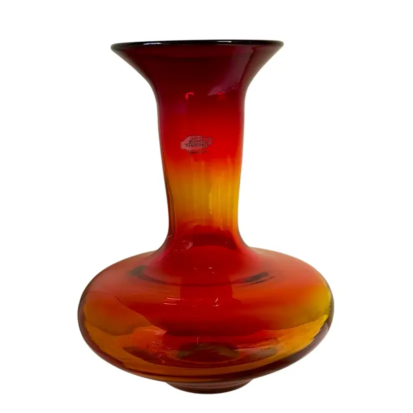 Stunning BLENKO Vase Tangerine/Amberina #3302 Flared Mouth Signed by Richard Blenko-Dated-Etched BLENKO- with Label. Glows with a 365 & 395 UV Light.