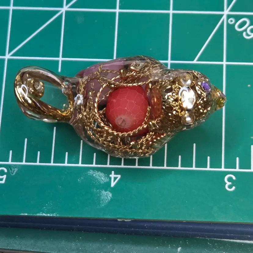 These tiny little birds are handmade from UV resin and bits of baubles and bling from my craft jewelry pile or whatever else I can throw in. No two are alike.