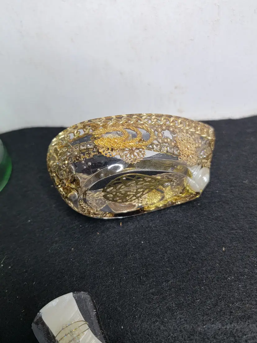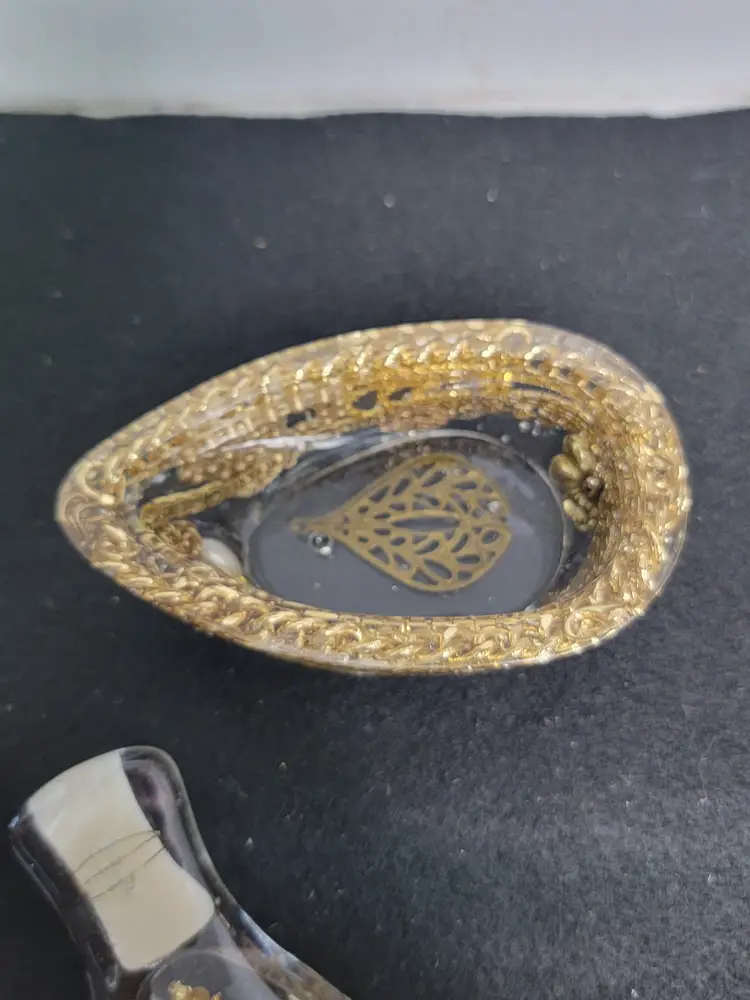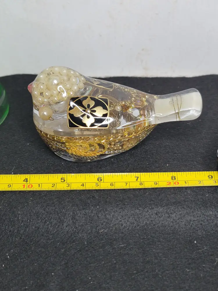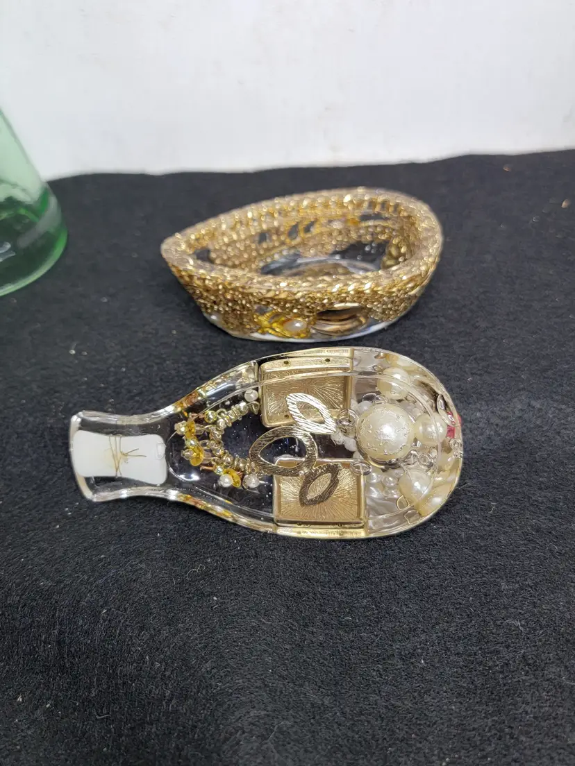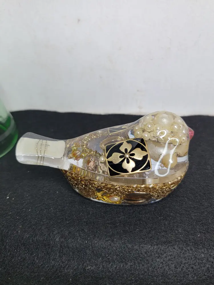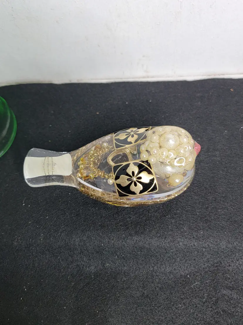 This bird is ready to hold all of your trinkets. Her plumage is made from upcycled jewelry bits and baubles.