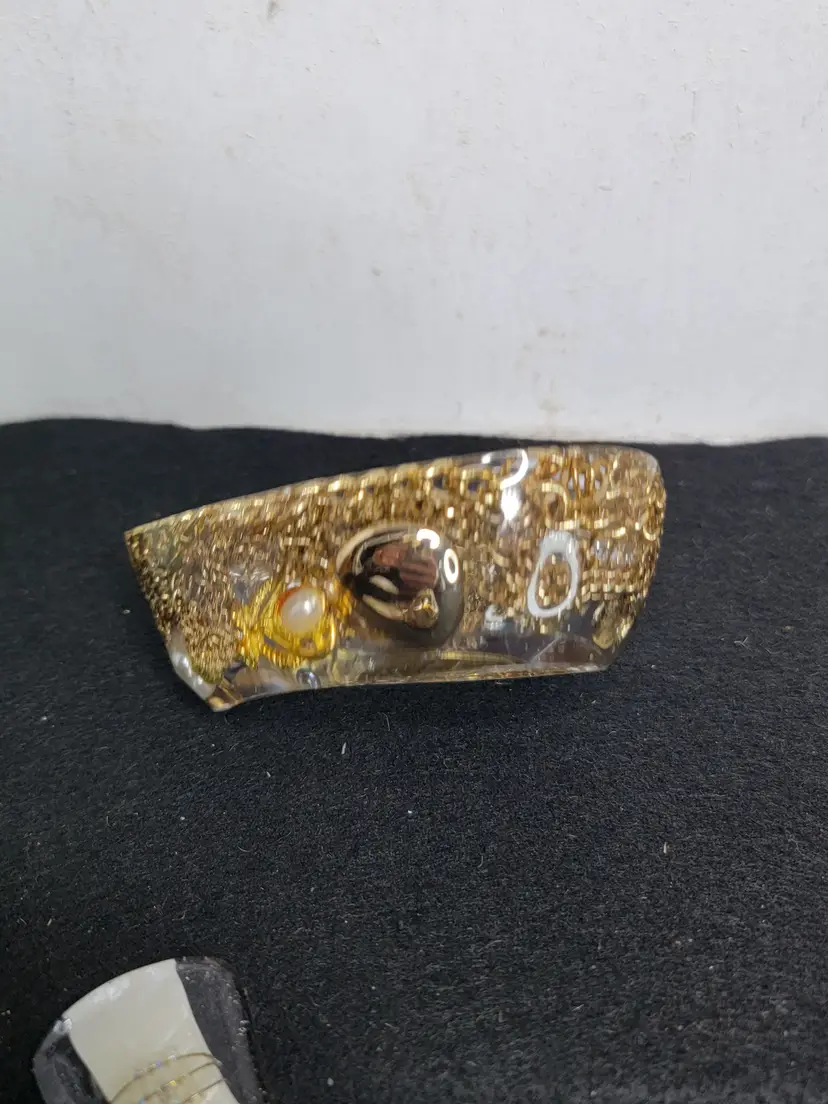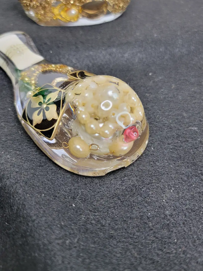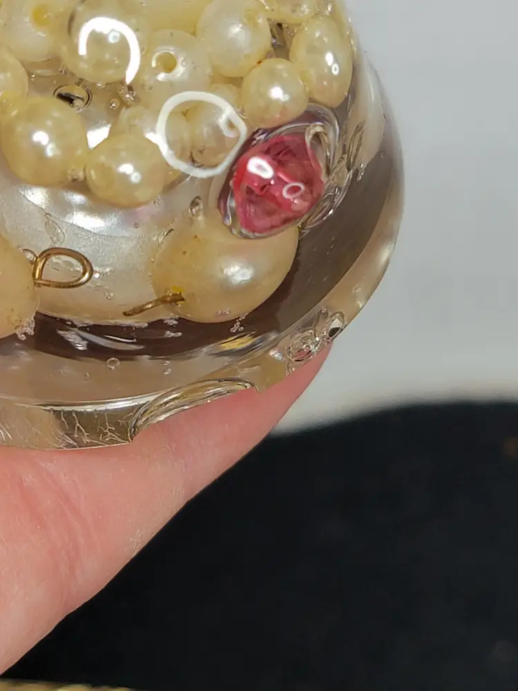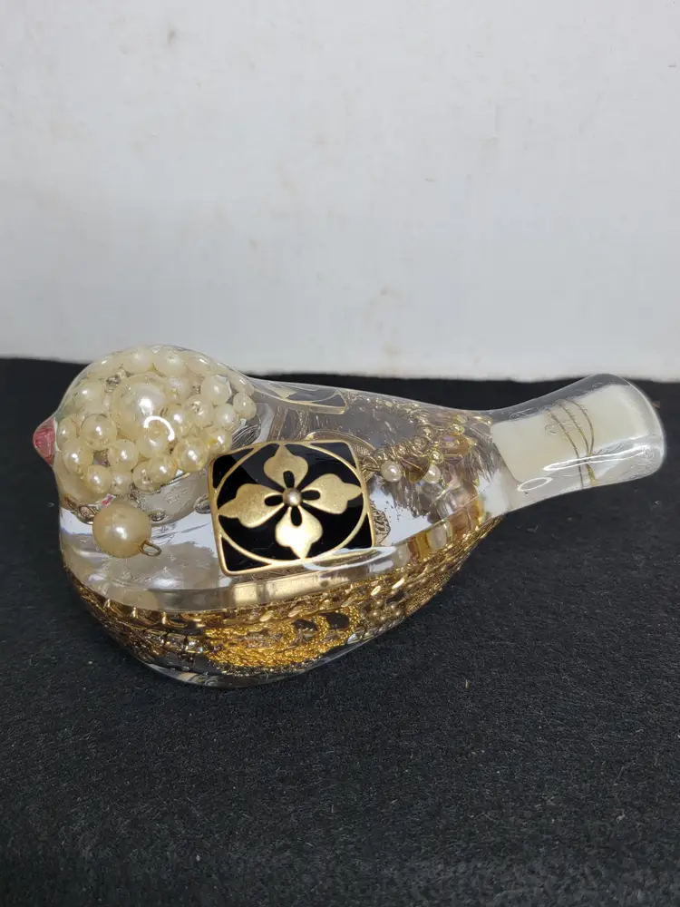 This bird has such a story. The base is made from bits of necklaces, earrings and findings. The top has a pink crystal bead beak, a pearl clip on earring for the crown, a pearl chocker gave us her head and chest, a teo beads from a lia sophia bracelet gave her wings, part if an earring gave her a back and we arejt quite aure what the tail was but it is perfect.