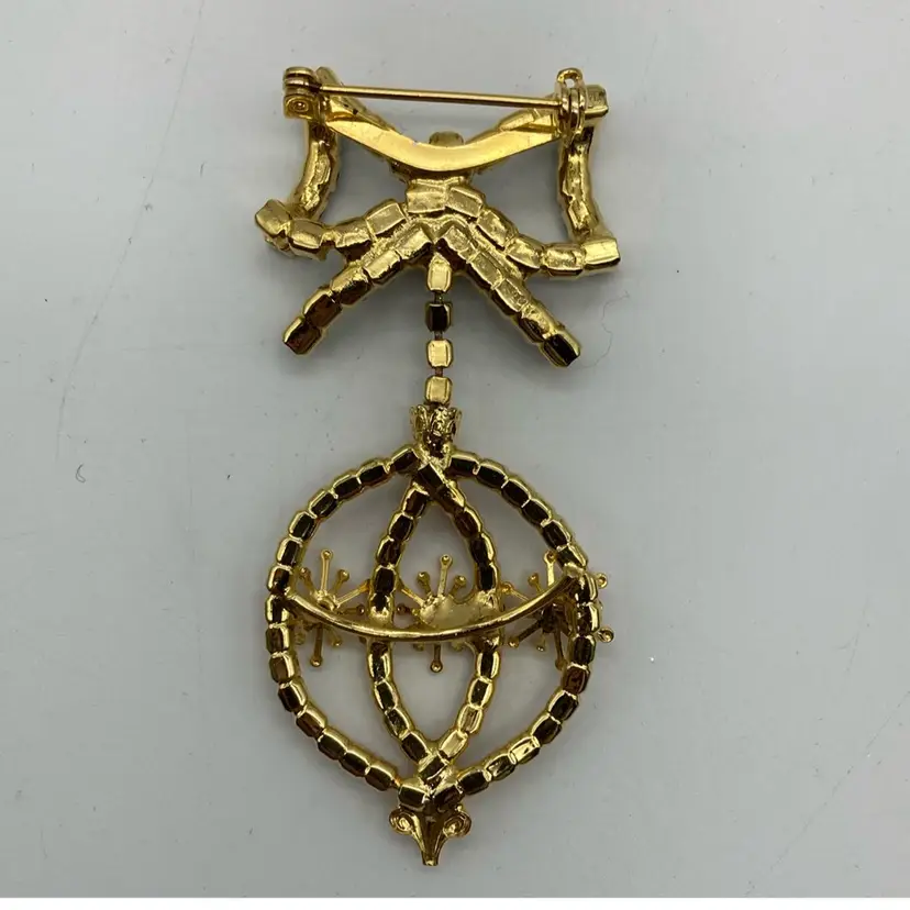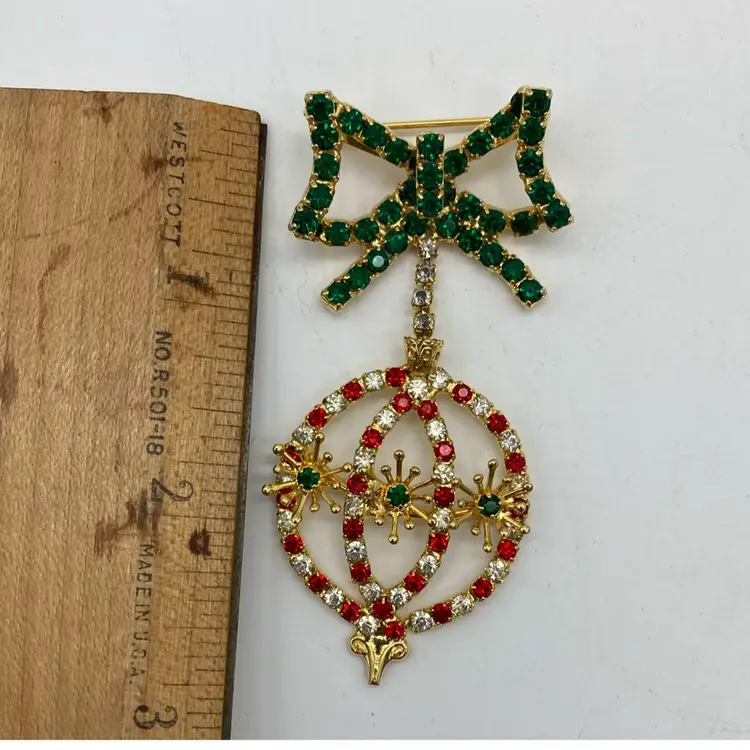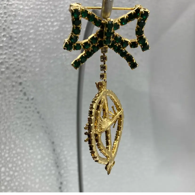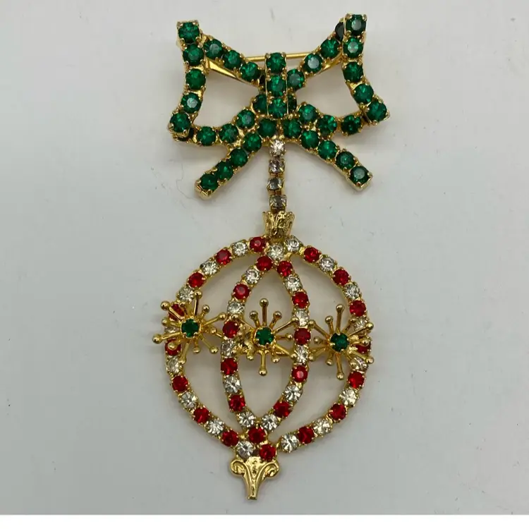 All rhinestones are present and it’s oh so cute! It’s a DANGLER. C-clasp works fine. Ornament wants to twist but lays flat when worn.