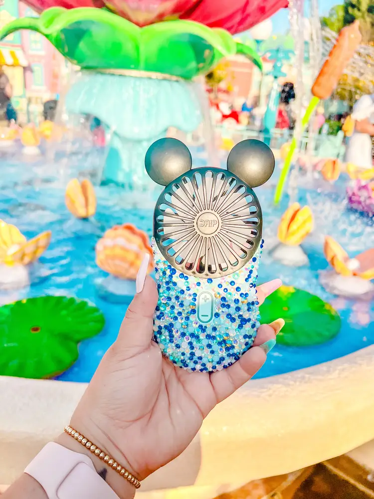 Stay cool and sparkly with this blinged-out Mouse-shaped portable fan! Hand-blinged for maximum sparkle, this fan is the ultimate accessory for Park trips, summer outings, or just adding a little extra glam to your day. Perfect for girly girls, stylish moms, and divas who love to stand out, this fan keeps you cool while turning heads. Lightweight, rechargeable, and ready for all your adventures!