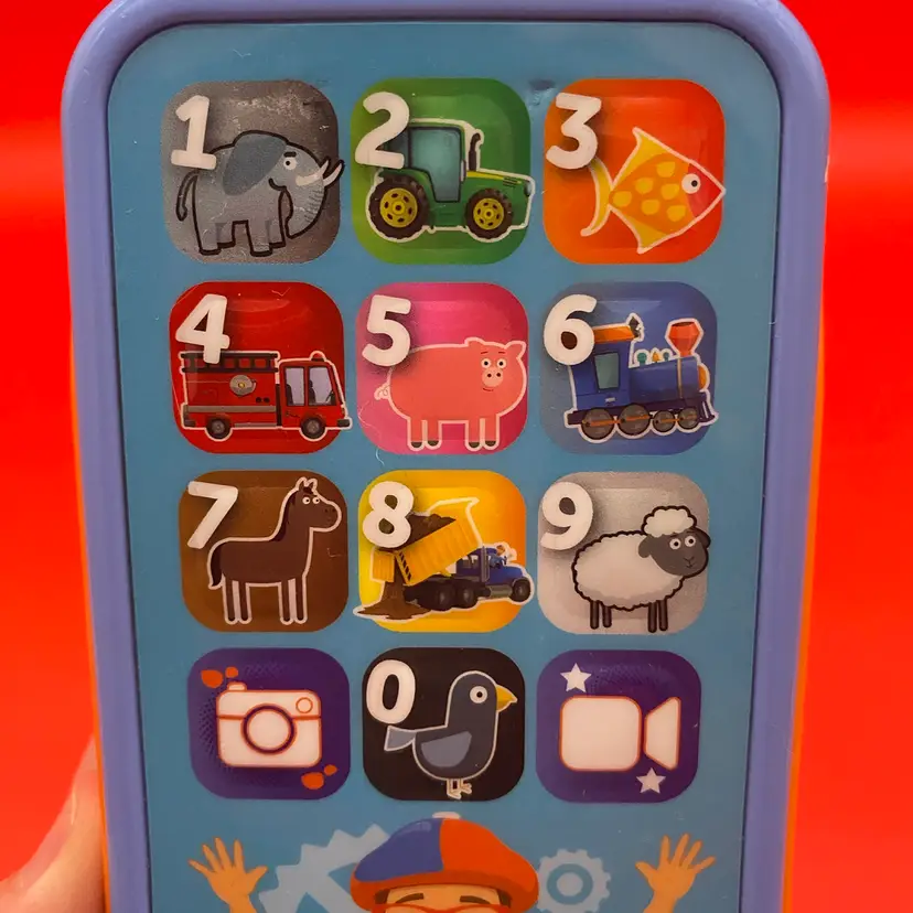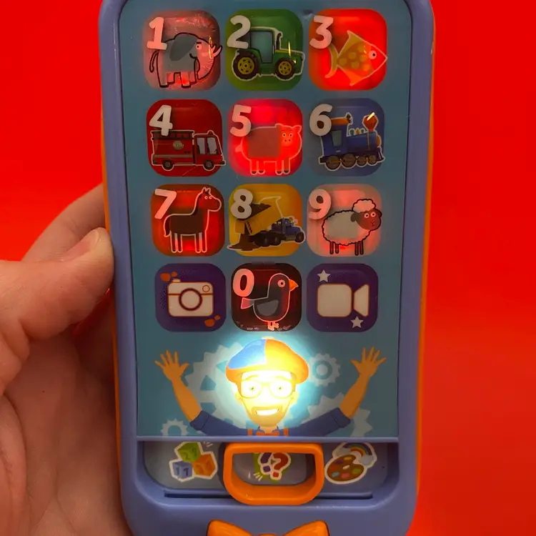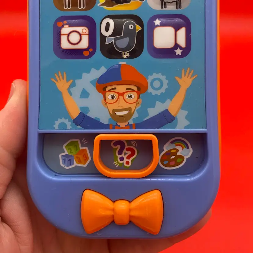 You are purchasing one Blue & Orange Kid's Phone Toy by Moonbug and their 2021 Blippi collection. This phone is around 6.25"x3". This toy is in overall good condition. Tested and working without issues. Will not include batteries. See final image for most notable area of wear on the top front.