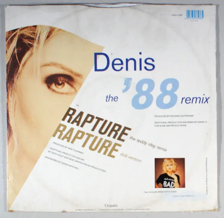 Denise was written by Neil Levenson. The song was inspired by his childhood friend, Denise Lefrak. In 1963, the song became a popular top ten hit on the Billboard Hot 100 chart, when recorded by the Randy & the Rainbows. Denis, (changing the name to its masculine form, pronounced without the final "e") is a cover of the song by Blondie. The cover of the song helped Blondie break into the international market. It was featured on the band's second studio album, Plastic Letters, and was the second UK single release by Blondie on Chrysalis records. The initial Blondie version contained a verse with partly improvised lyrics in French by the group's vocalist Debbie Harry. The second, re-recorded version had its debut as a bonus track on EMI UK's 1994 re-issue of Plastic Letters. Denis was released in February 1978 and reached No. 2 in the UK and broke into the Top 20 in most European countries including No. 1 in Netherlands. In the UK, the song was kept at No. 2 for three weeks, first by Kate Bush's Wuthering Heights and then by Brian and Michael's Matchstalk Men and Matchstalk Cats and Dogs. Just like Rip Her to Shreds, the single was issued on both 7" and 12" formats in the UK, and both feature two B-sides, Contact in Red Square from Plastic Letters and Kung-Fu Girls from Blondie. Denis was the only single released in the US from Plastic Letters (with I'm on E as the B-side) though it never charted. In 1988, a remixed version of the track was issued as a single from the Blondie/Debbie Harry remix compilation Once More into the Bleach. This time the single reached No. 50 in the UK.