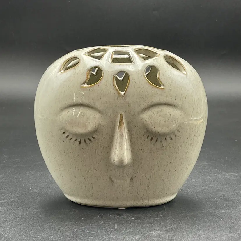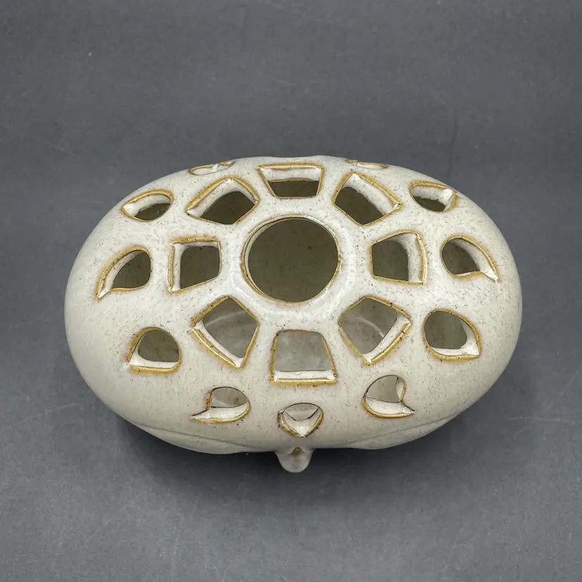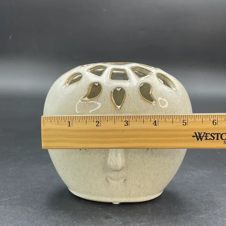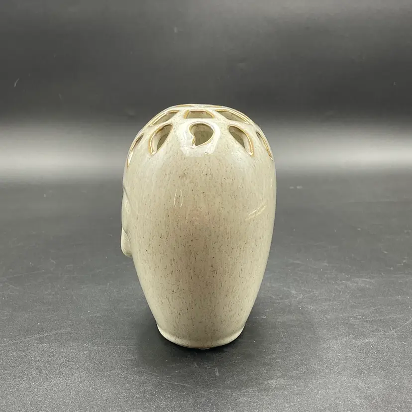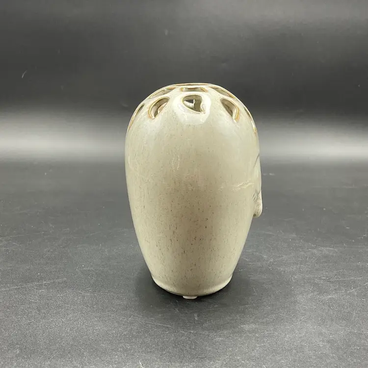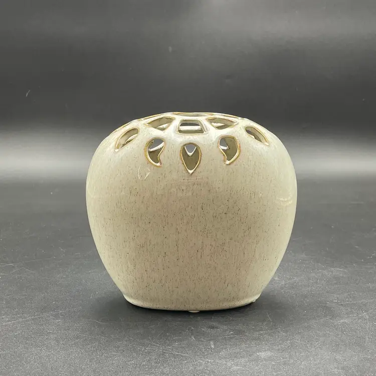 This is a contemporary Bloomingville Dreamer had vase with a reticulated top. Marked on the bottom. Measures approximately 5.5" tall x 5" wide. No chips or cracks.