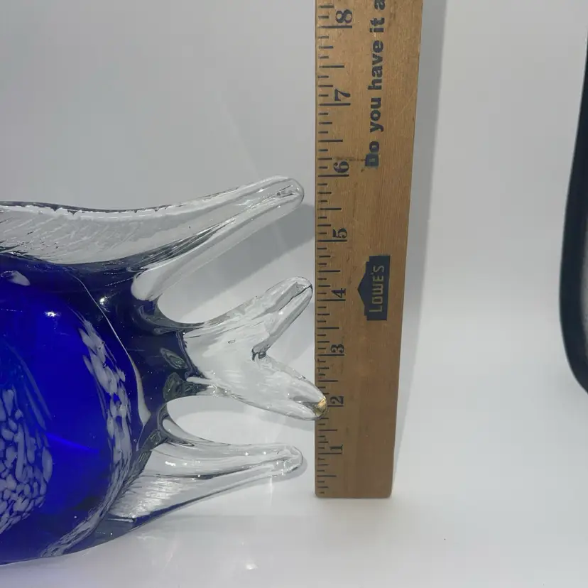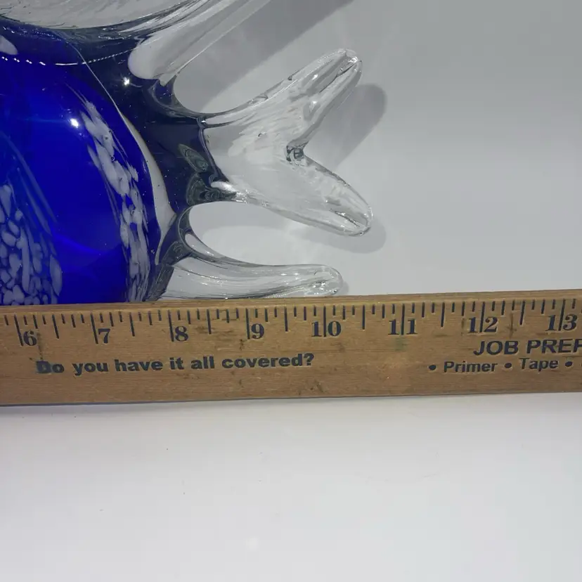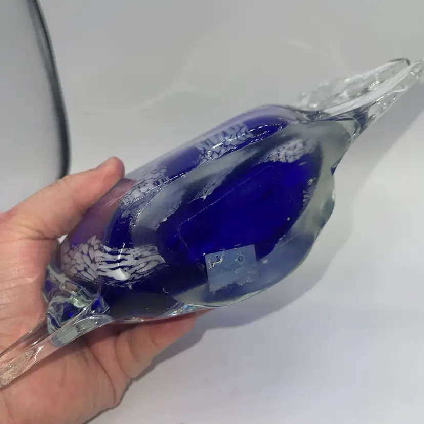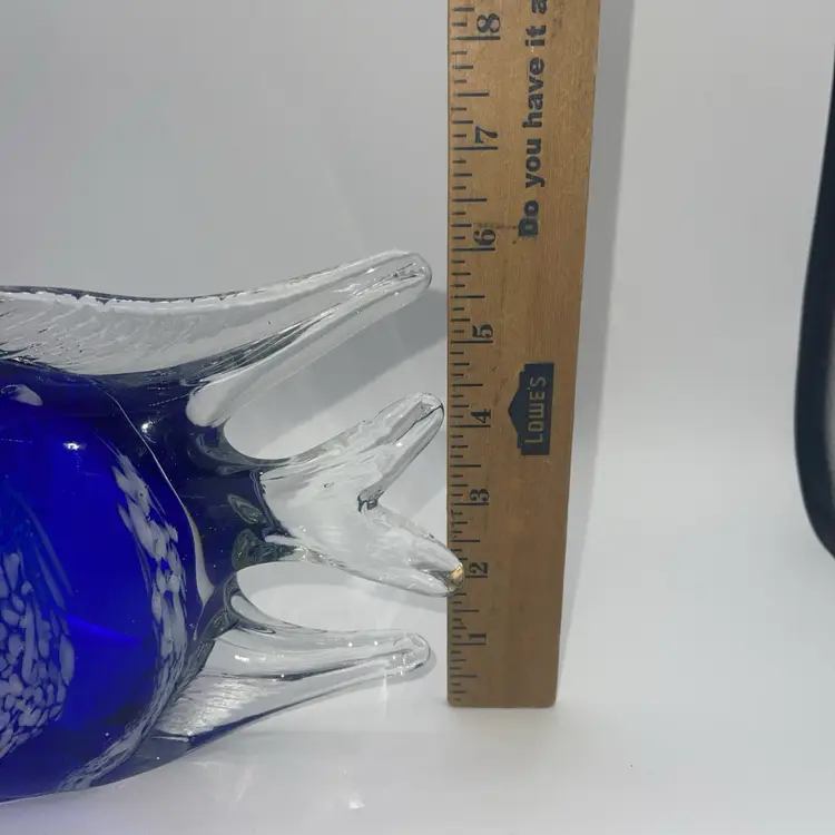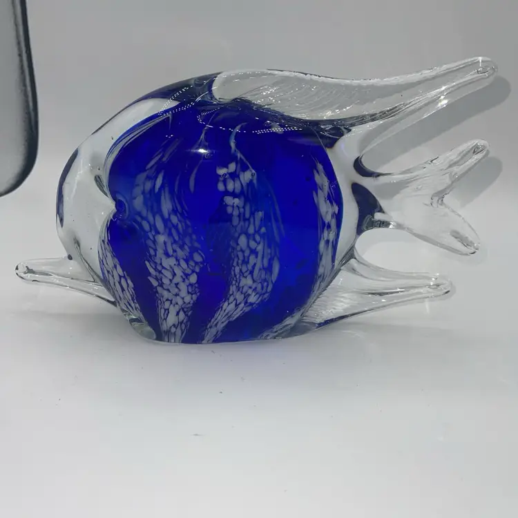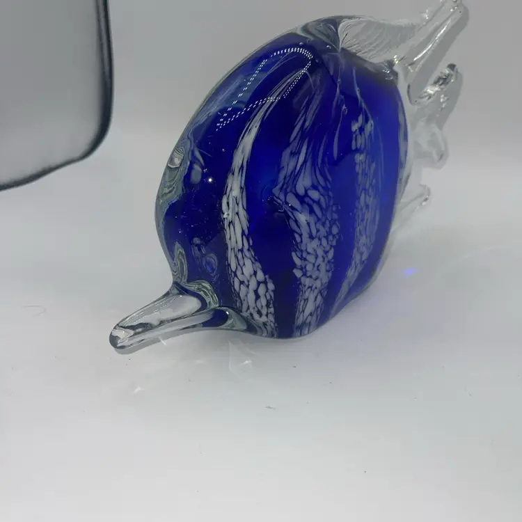 This is a beautiful figure of a fish cobalt blue with white stripes 10 1/2” x 6” high. There’s no chips or cracks. It weighs almost 6 pounds. Please ask me any questions. You may have. Thank you for looking.