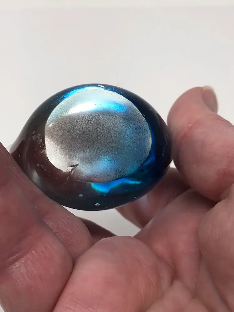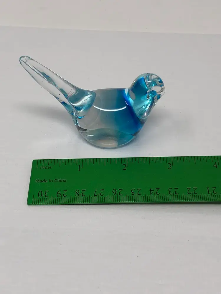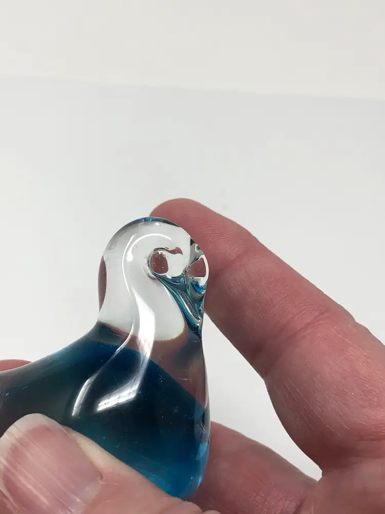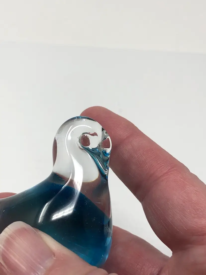 2" glass bird with a wash of blue inside. No markings or labels. No chips or cracks.