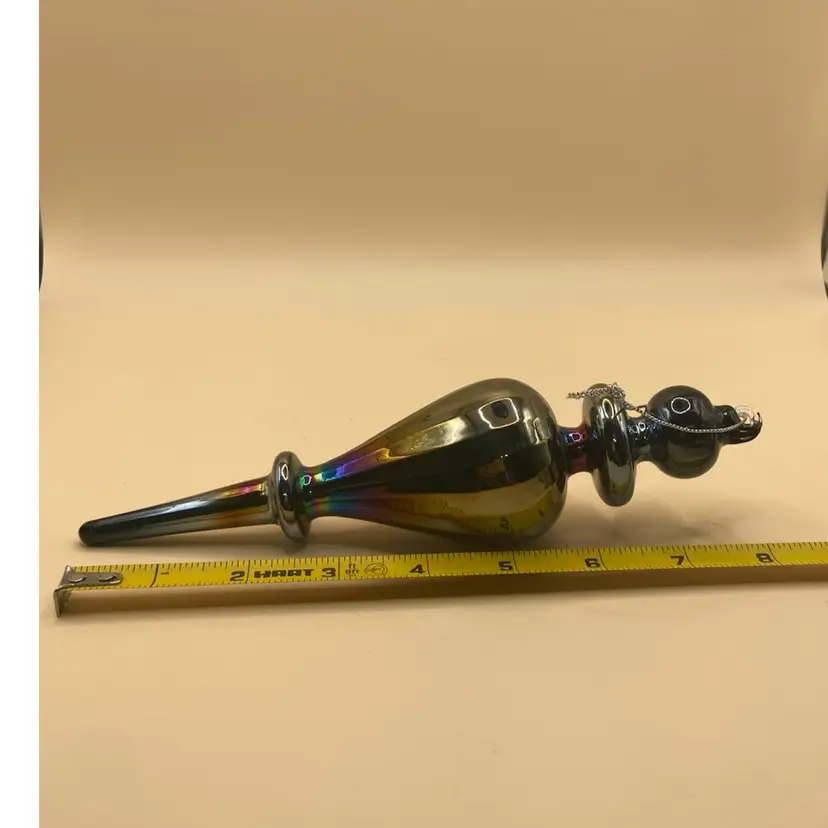 She’s a stunner. Long and slender, she is a sleek addition to your Christmas tree. Pictures don’t do this one justice. There is an iridescent color to this beauty that is very appealing.