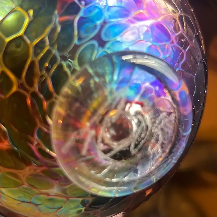 This is gorgeous and hard to photograph the amazing colors. Come to the Glass Gallery to see it live! Signed and dated ‘08 No damage.