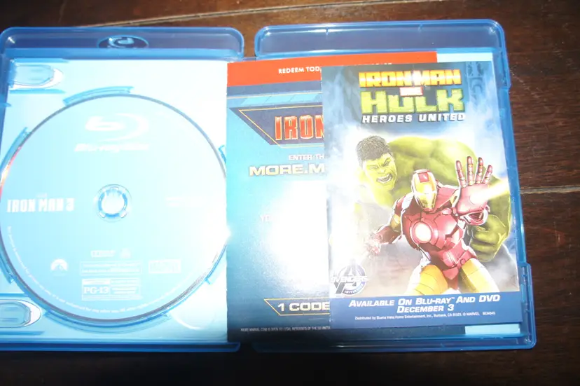 Listed is a pre-owned 2 disc set BLU-RAY DVD movie - Marvel's 'IRON MAN 3' W/ bonus feature. All original promo / ad sheets included. Disc play surface areas like new. No blemishes. Thanks for lookin'.