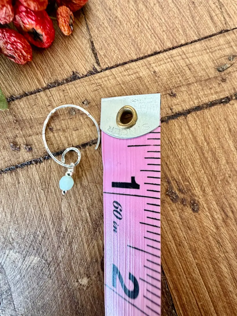 Hammered Sterling Silver Swirll Style Hoop Blue Chalcedony Agate