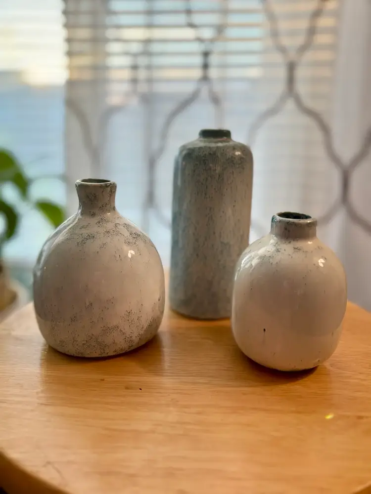 Blue and white ceramic vase (set of 3) They look so cute all together holding simple flower buds ๐ #cottagecore #minimalist #decor