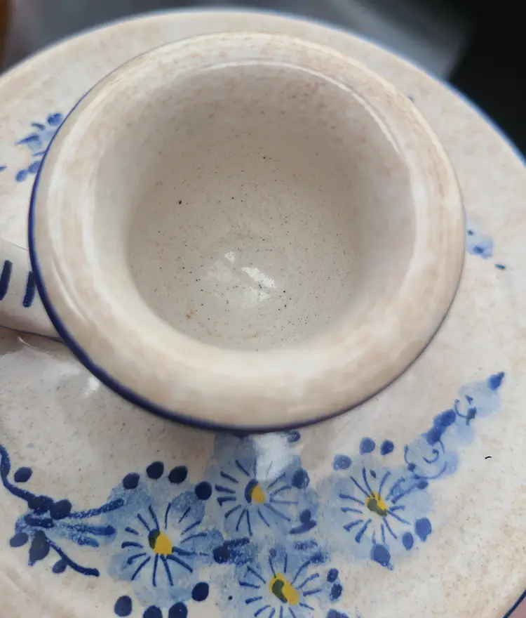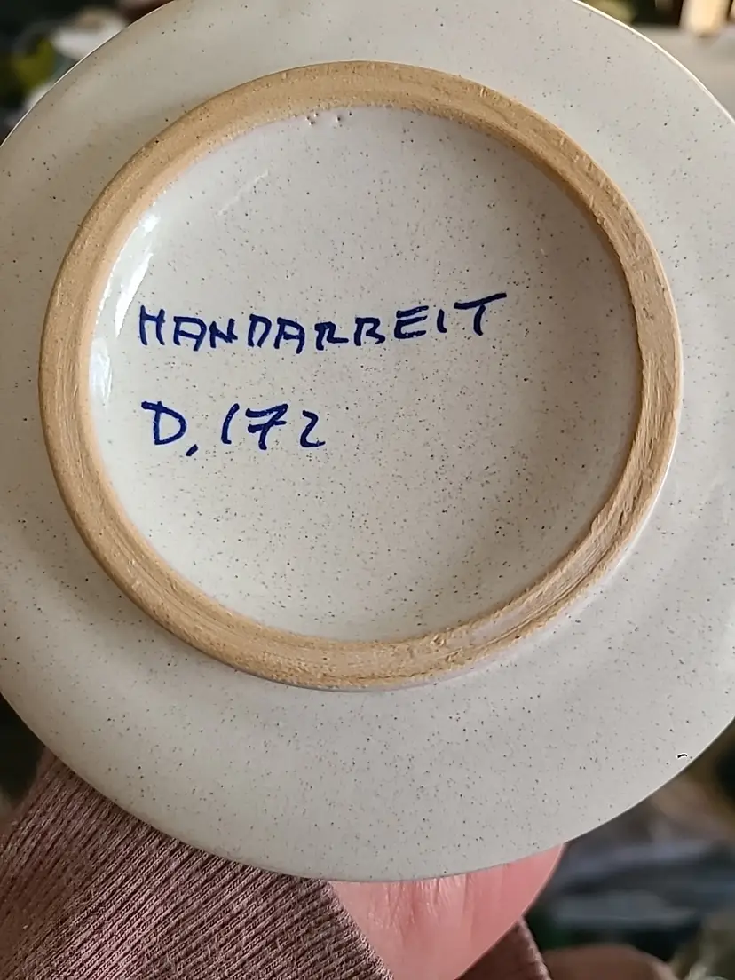 Based on backstamp, this appears to be handmade in Germany. Very good condition with no chips or cracks. No crazing. No visible scratches. This would be darling in a farmhouse or cottage theme home. Approx 2" tall, 4.23" wide.