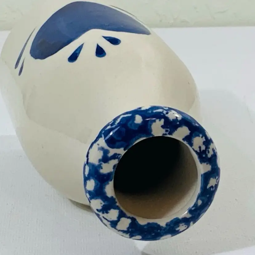 Darling vessel. 5.5” tall with 3” wide. Some crazing or bumps underneath under the glaze. May be part of manufacturing process otherwise in great condition. Please review photos.