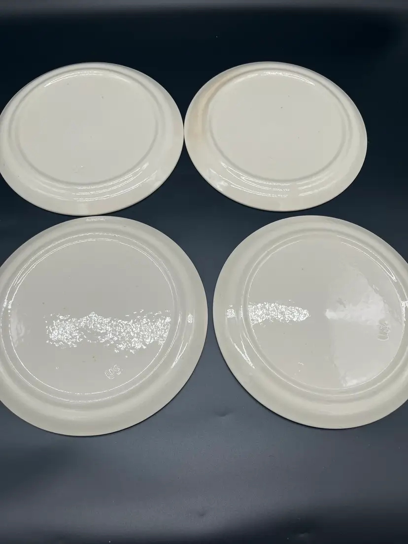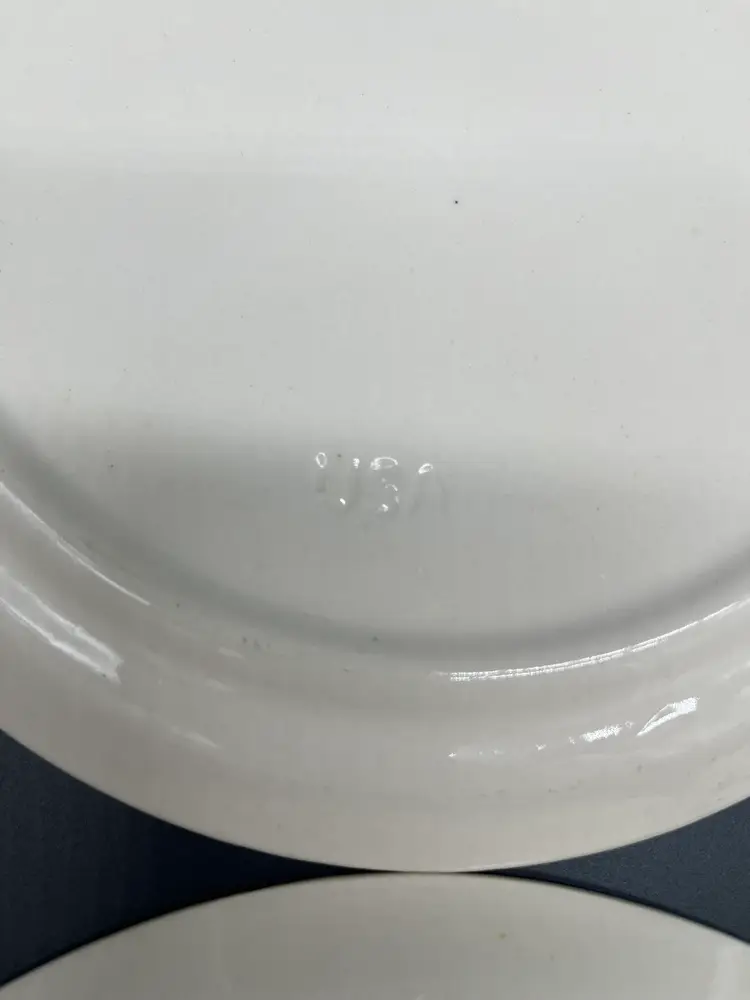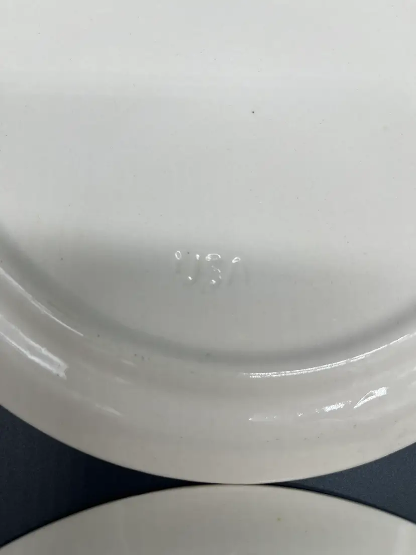 Excellent condition, no chips or cracks. One plate has mild yellowing on back, perhaps from being placed on something hot.