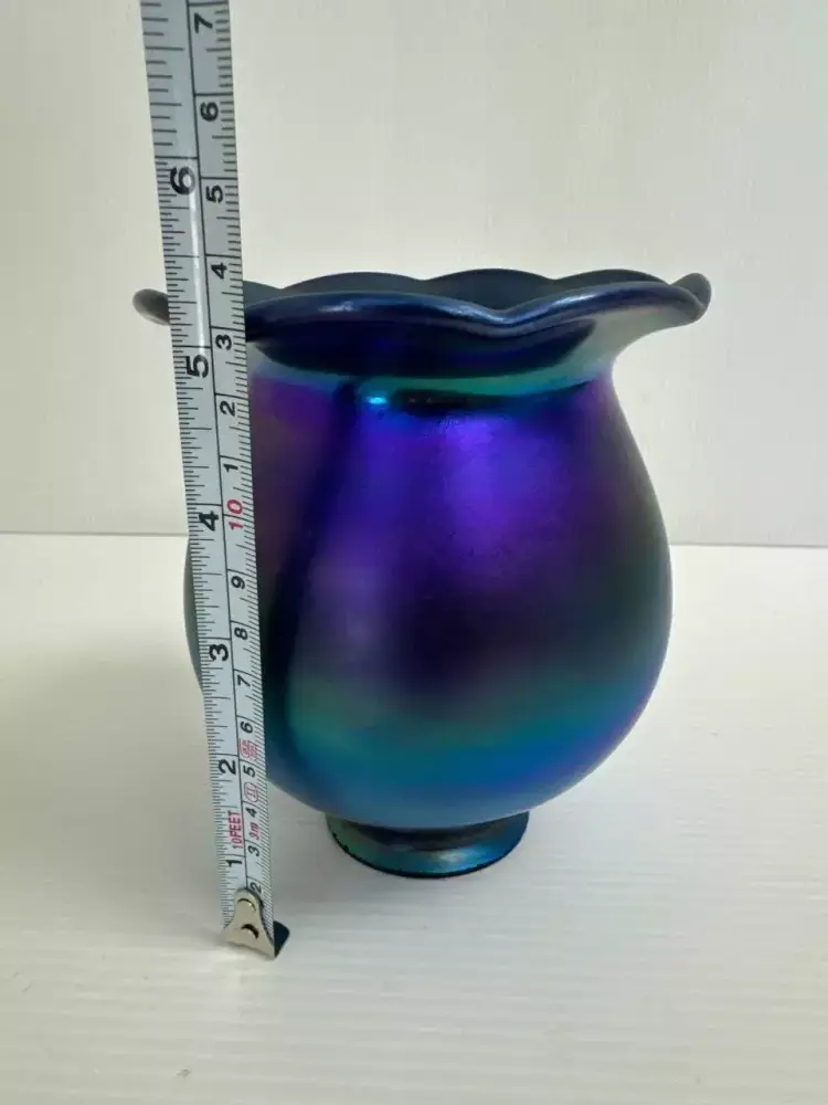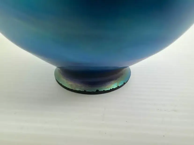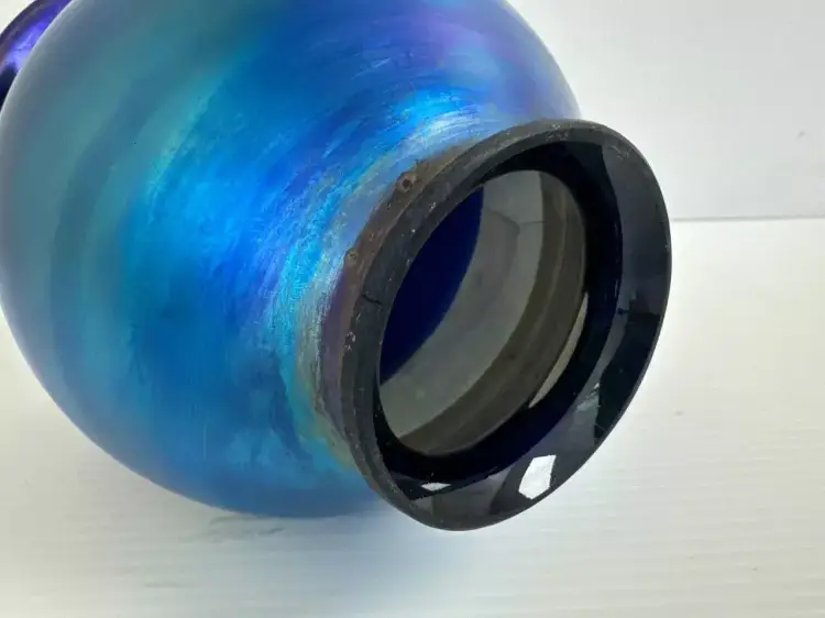 Blue Aurene Art Glass Lamp Shade globe for desk or table top. These lamp shades were very popular from the late 18th through the early 20th century when kerosene or gas lamps were being used. Beautiful Blue iridescent color. Minor flaws are consistent with age of the piece ( please see pictures)