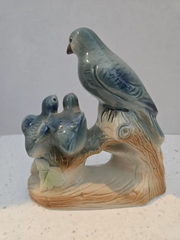 Vintage Bluebird, momma and babies, Made in Brazil, 7" tall x 7" long, birds