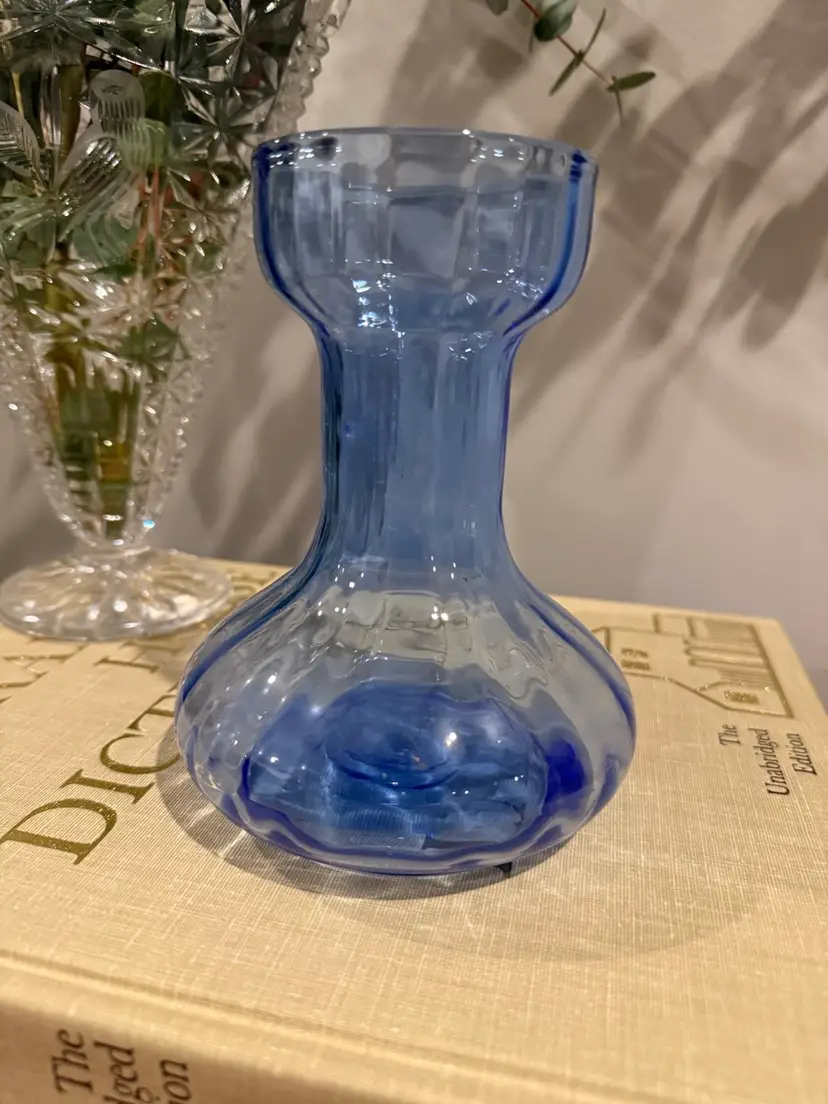 Vase is a striking blue hue, featuring a beautifully blown optic swirl design. This decorative container makes for an eye-catching piece in any home decor setting.