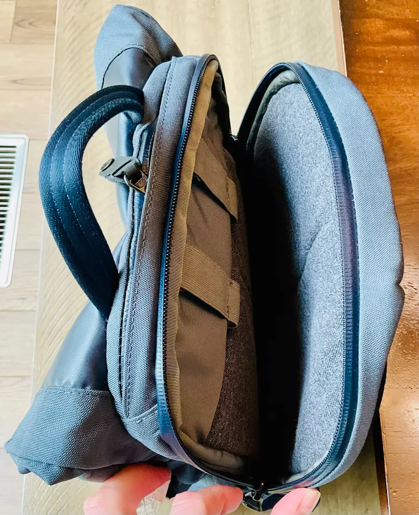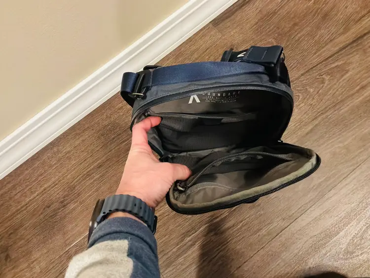 Rare blue Errant Sling from Boundary Supply. It is in great condition with slight wear, but no tear (see close up photos). The Errant Sling is a great EDC sling that is 15L in capacity. It is fantastic as a commuter sling and is weatherproof. Has a laptop sleeve and works within Boundary’s modular system. It utilizes a magnetic system to allow the bag to expand and/or compress. Errant sling includes the Aux Compartment which is a modular pack that connects and disconnects to the Errant sling to add additional storage or become 3 liter EDC bag. See photos to see what the Aux Compartment looks like connected and disconnected to the Errant Sling. The Aux Compartment is weather resistant and has storm proof zippers.