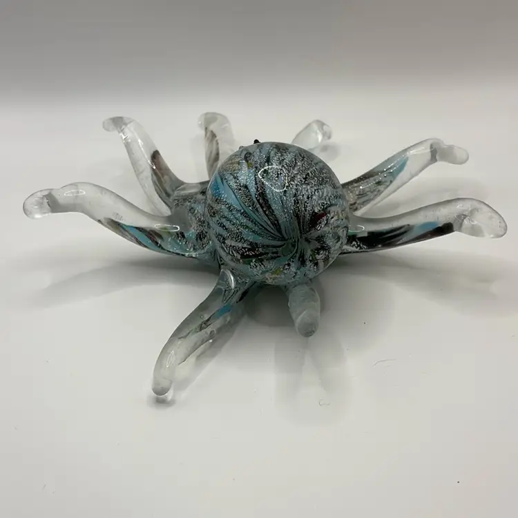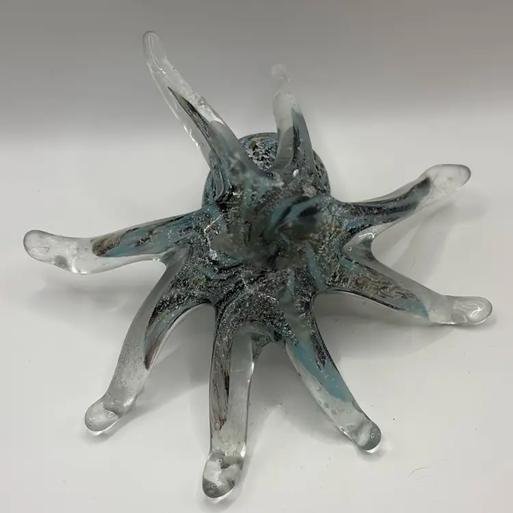 Blue, Brown, White Octopus Paperweight 8” Across And 2” Tall Polished But Not Clear Bottom