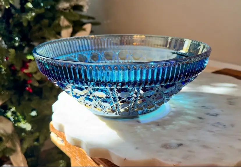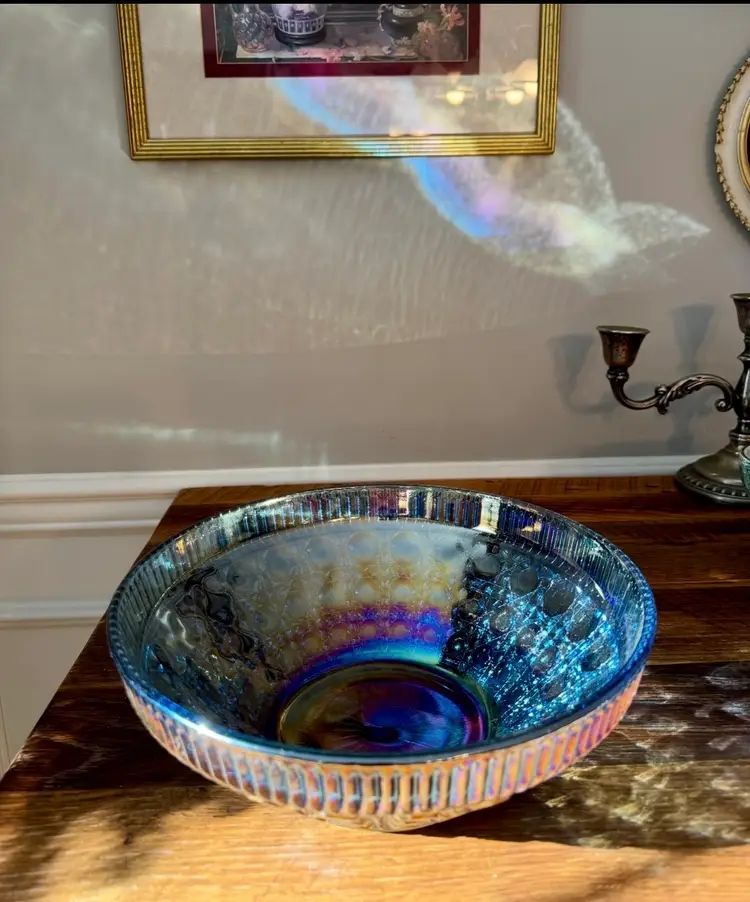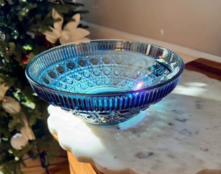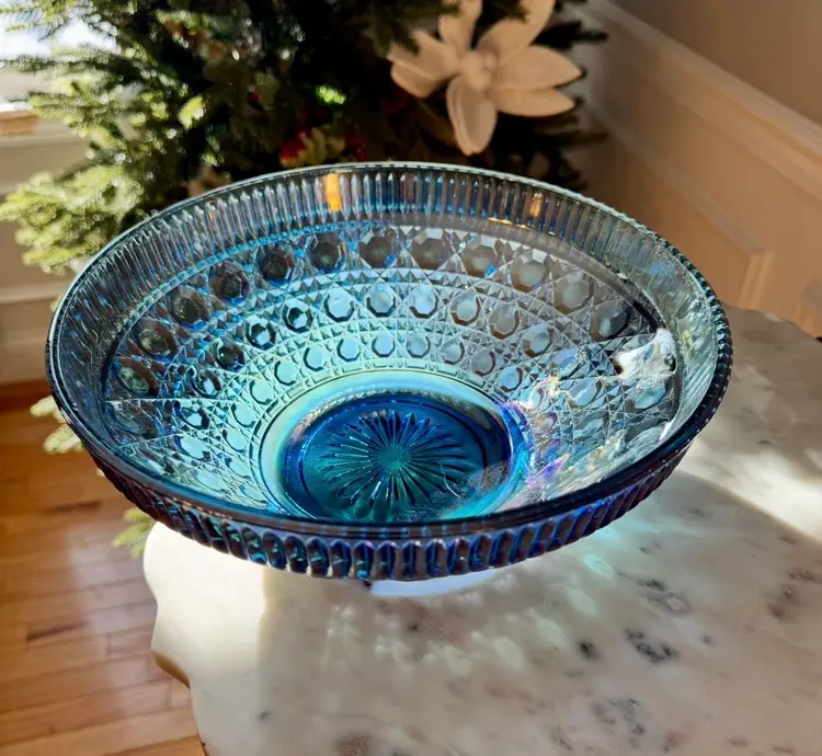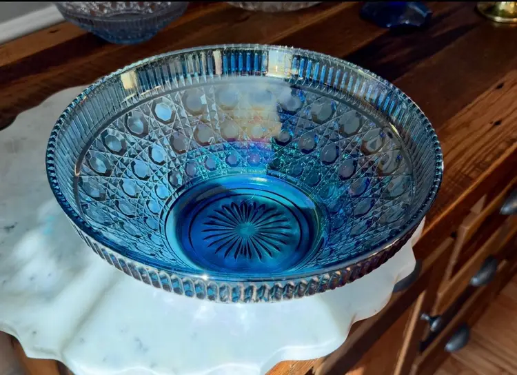 Blue Carnival Glass Bowl