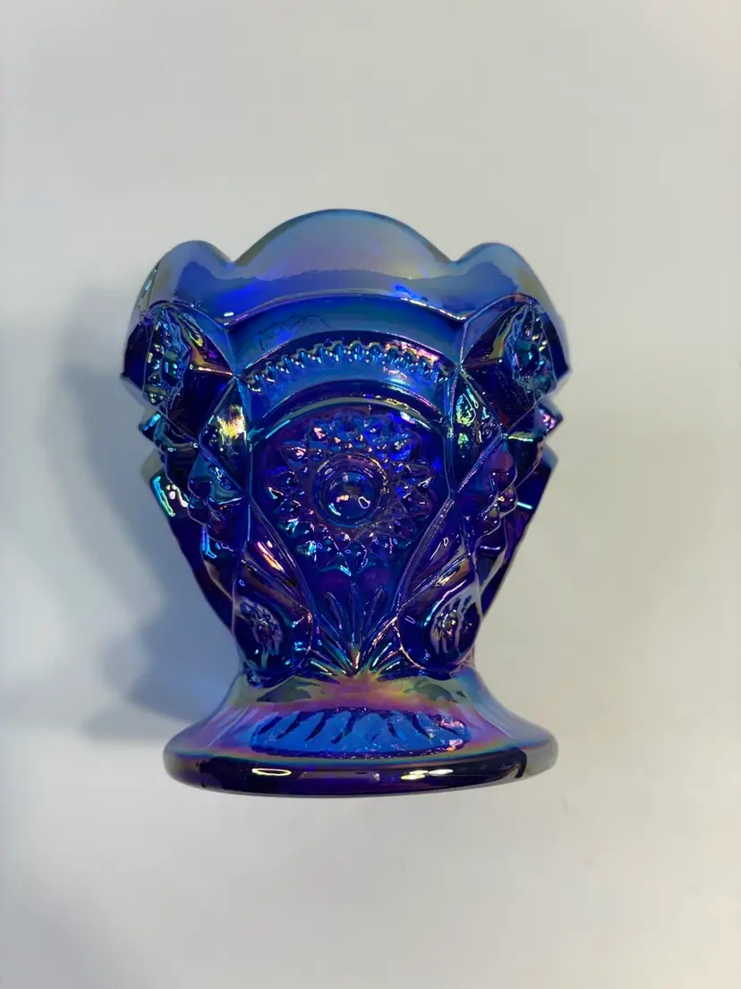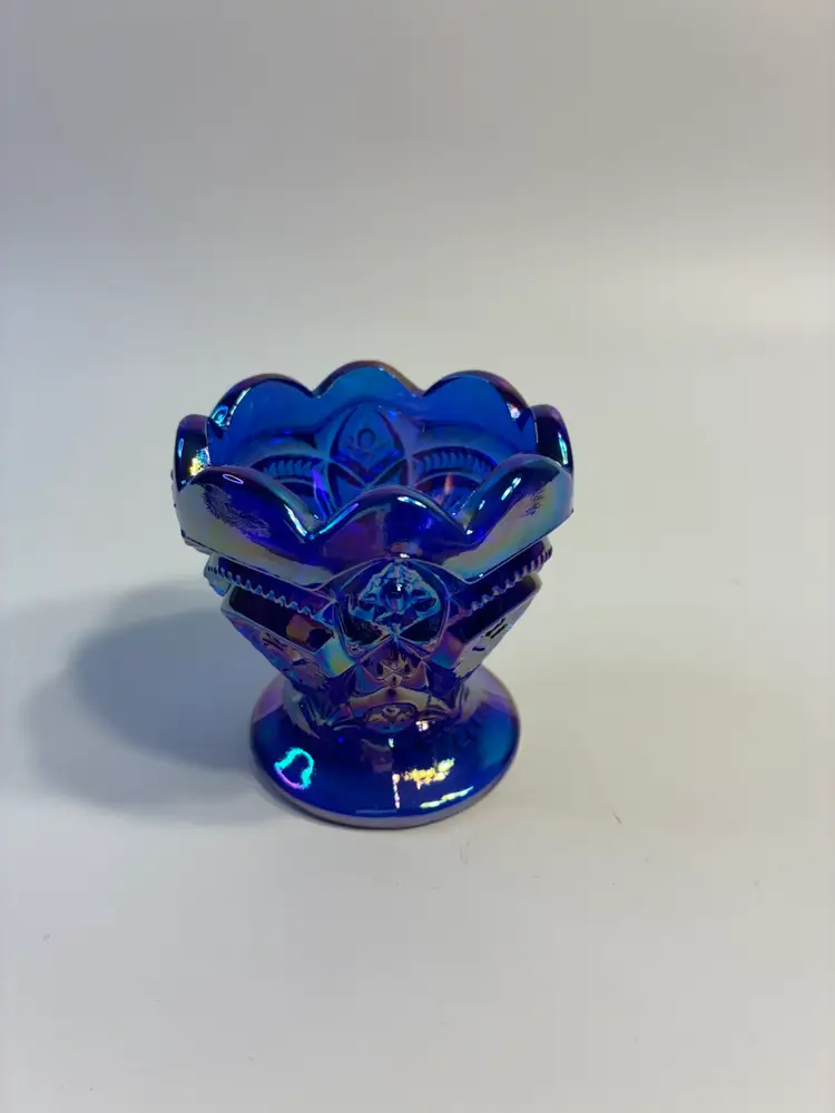 Blue Carnival Glass Toothpick Holder 2-3/4”