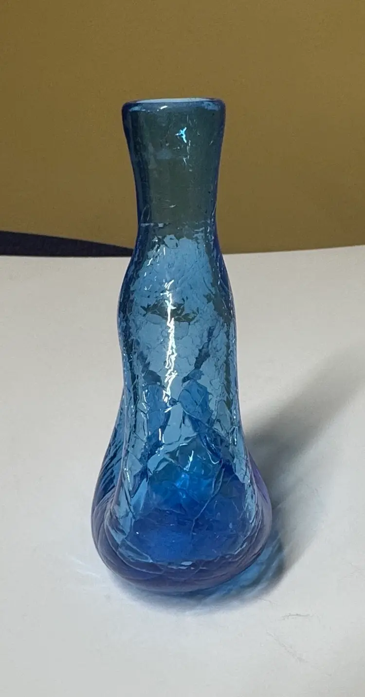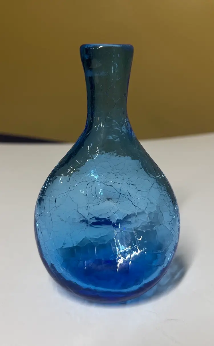 Elegant blue crackle glass miniature donut vase. Perfect for home decor. Hand blown 5” tall 3” wide Excellent condition with no breaks or chips (13741129253)