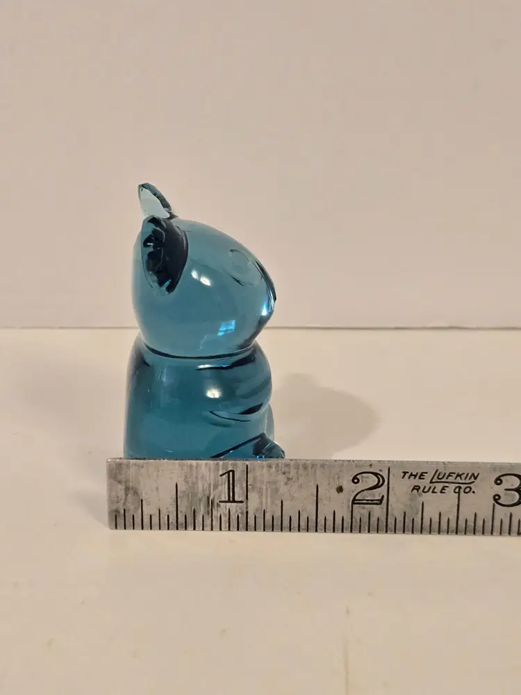 This sweet little guy measures approximately 2.5×1.5×1.25 inches and is in good used condition. There are no markings.